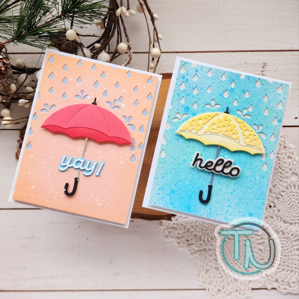 These Raining Hearts dies pair perfectly with the Umbrella Bloom set and give you so many options to create! Today I used the actual raindrops for my background on both cards but there is also a version with heart shaped rain drops that is too cute!