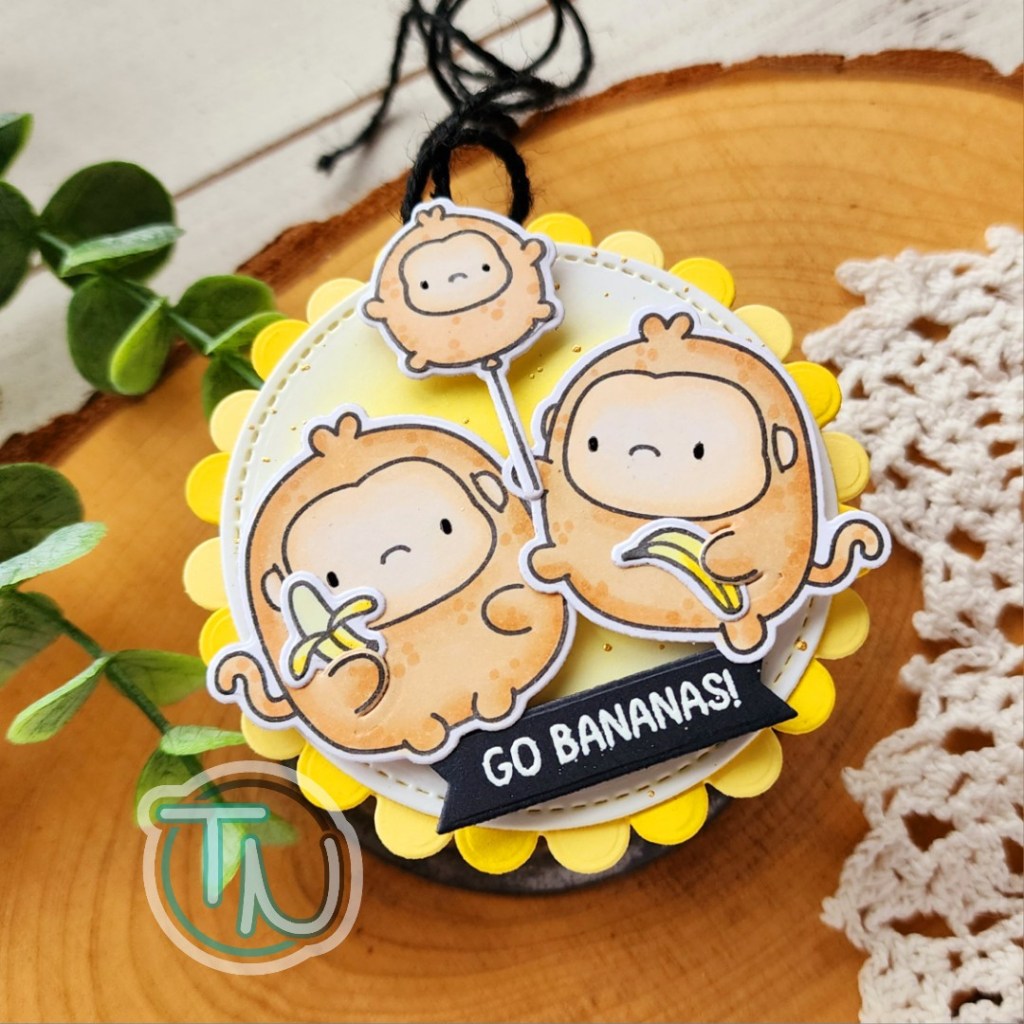 My daughter loves monkeys and yellow so I’m sure she’s going to giggle at this silly tag today.
