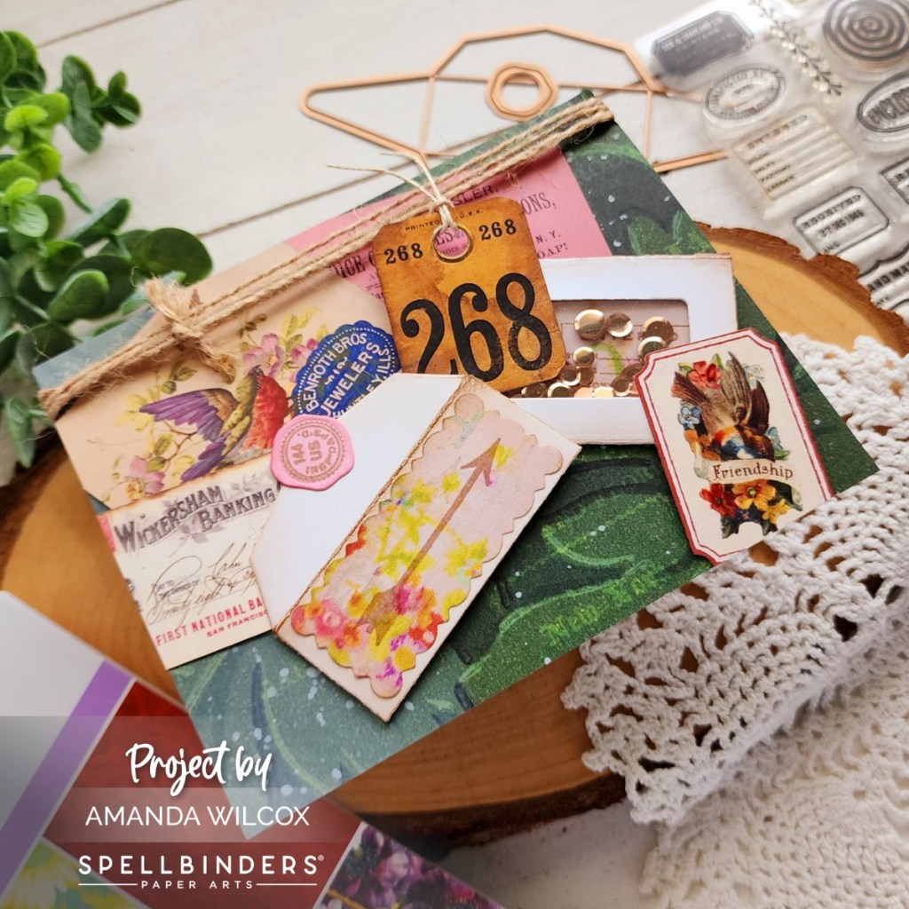 Hello again crafty friends. I’m back today with another card featuring the Spellbinders Flea Market Finds Collection from Cathe Holden. When I pull out these products they just make me want to get inky and messy. The more layers and dimension the more I like what I’m creating with them.