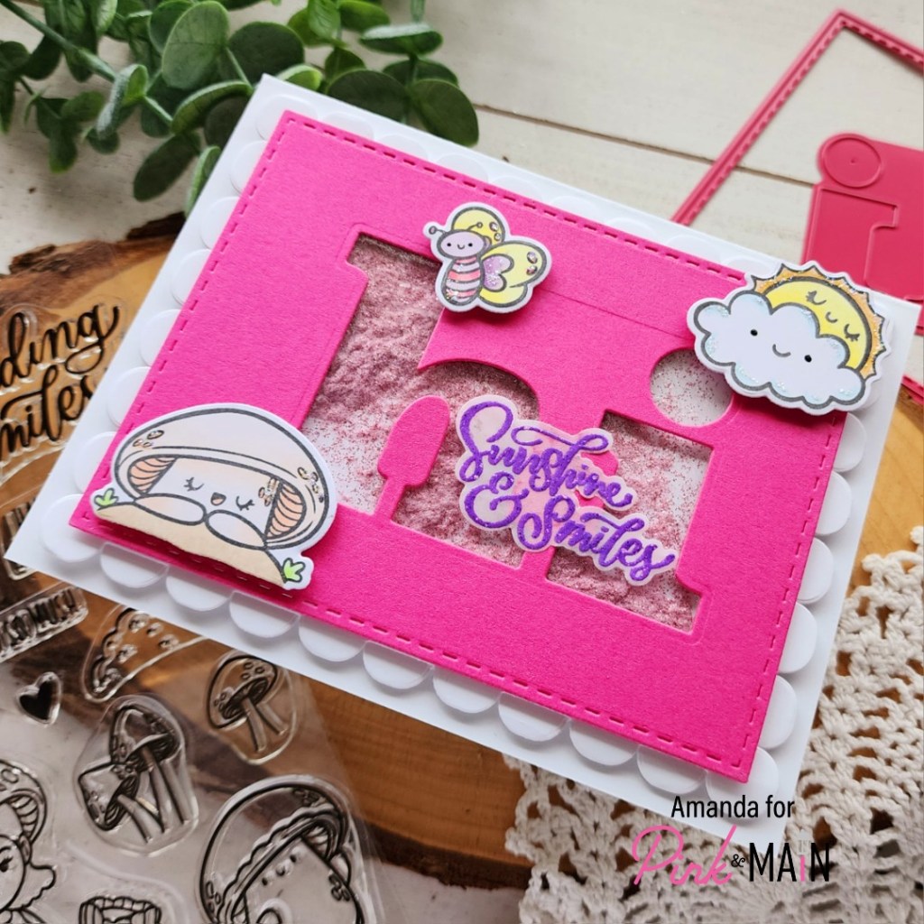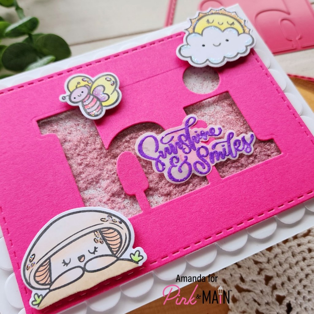 Today’s shaker filler is sparkling cotton candy flock with glitter. It just seems to float around when you shake it which is so fun and doesn’t add a bunch of extra bulk or weight to the card.