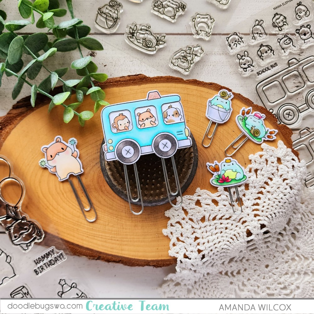 Remember, you can add finishing touches to these for that little extra as well. I used black glaze pen on any eyes I could, white gel pen highlights on the frogs and glossy accents on things like snail shells, cattails and noses. Then I also added sparkle with stardust Stickles to the sparkles in Hammy’s hands and the lights on the bus.
