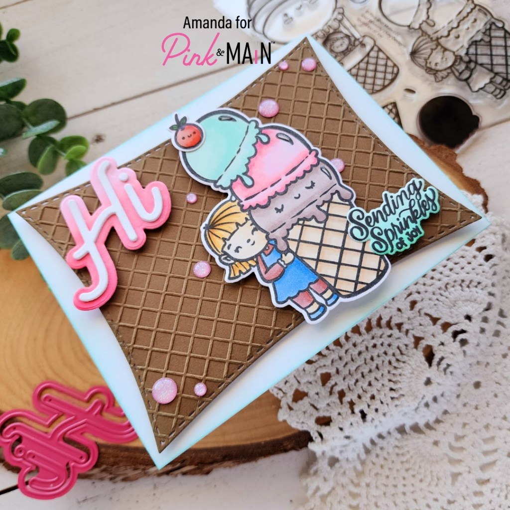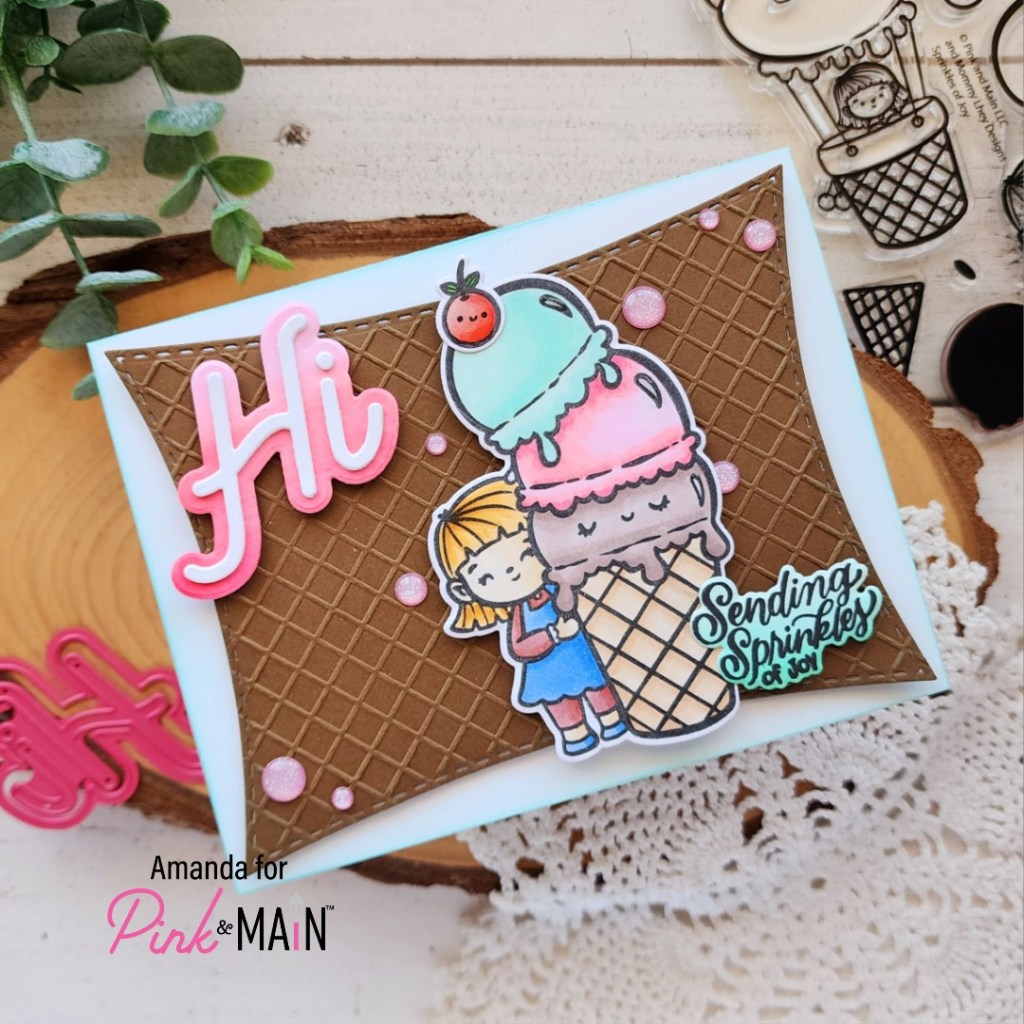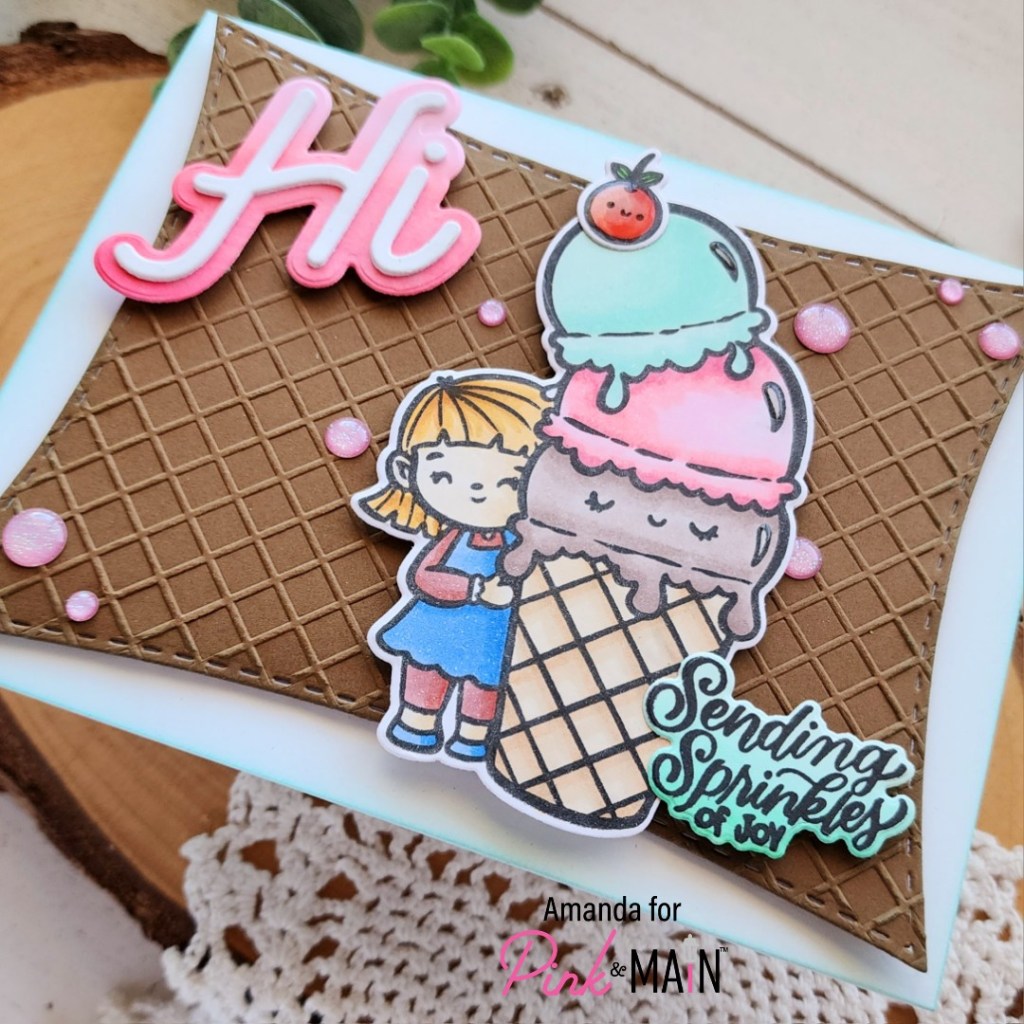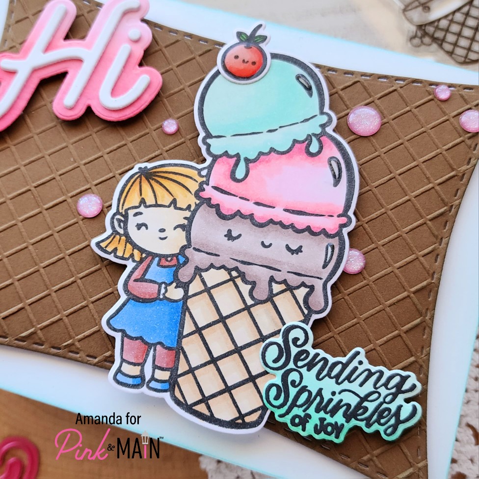 Hi again! I’m over on the Pink & Main blog today with a sneak peek of the upcoming May release. Who doesn’t love ice cream? Seriously, it’s probably my most desired sweet treat so I just had to color this cutie up when I saw her!