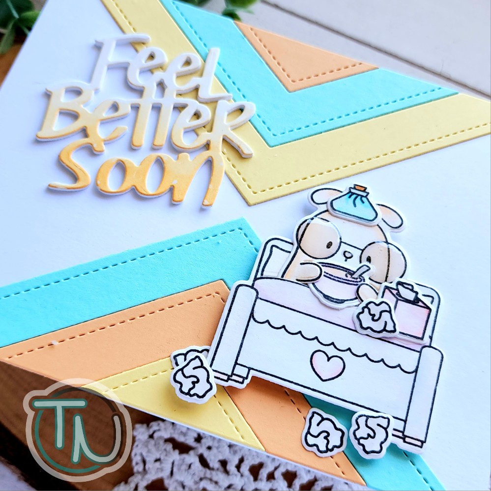 Welcome crafty friends! Today I have a get well card to share featuring Mama Elephant stamps and dies. These stamps and dies are so fun to create with and make all kinds of “get well” cards really easy to create.
