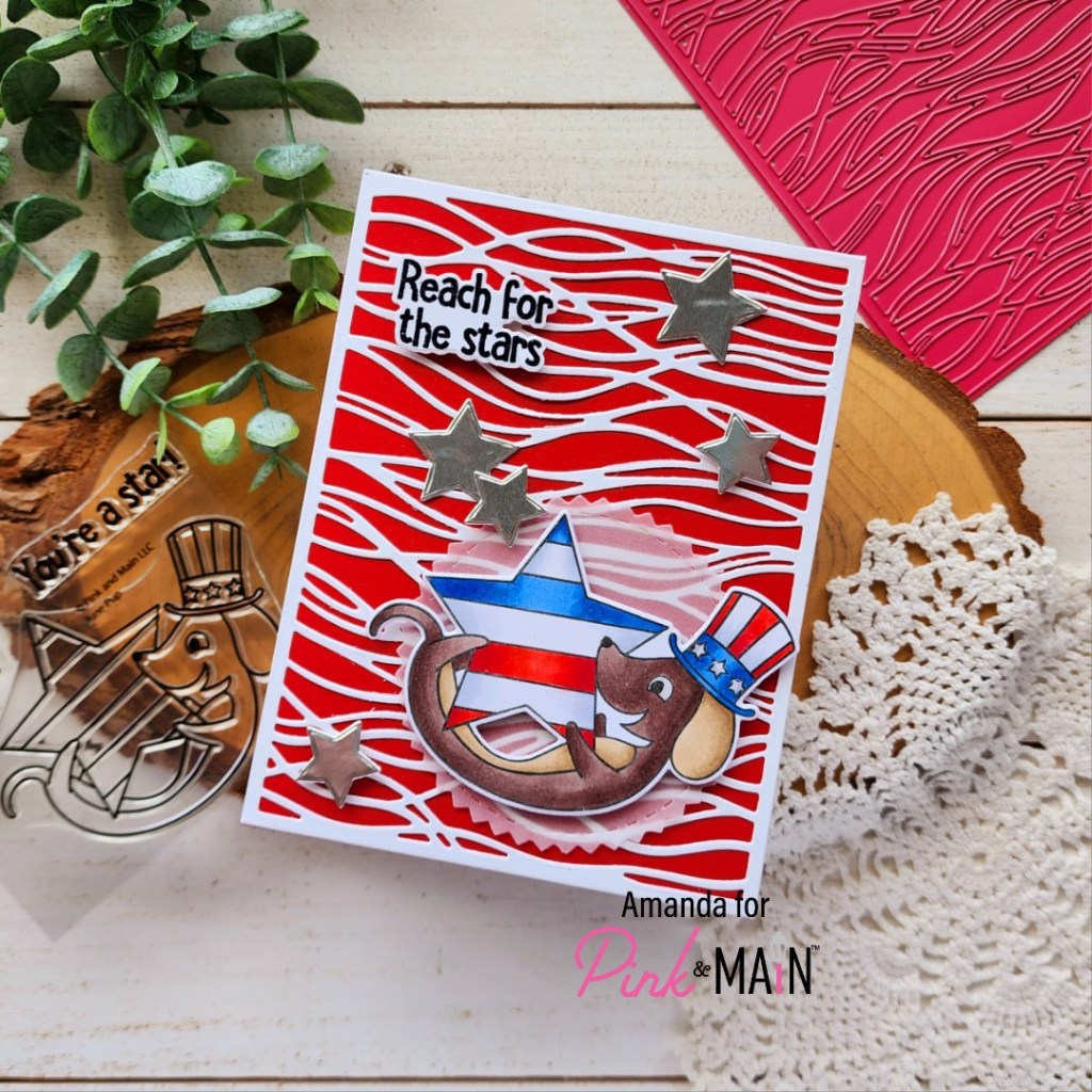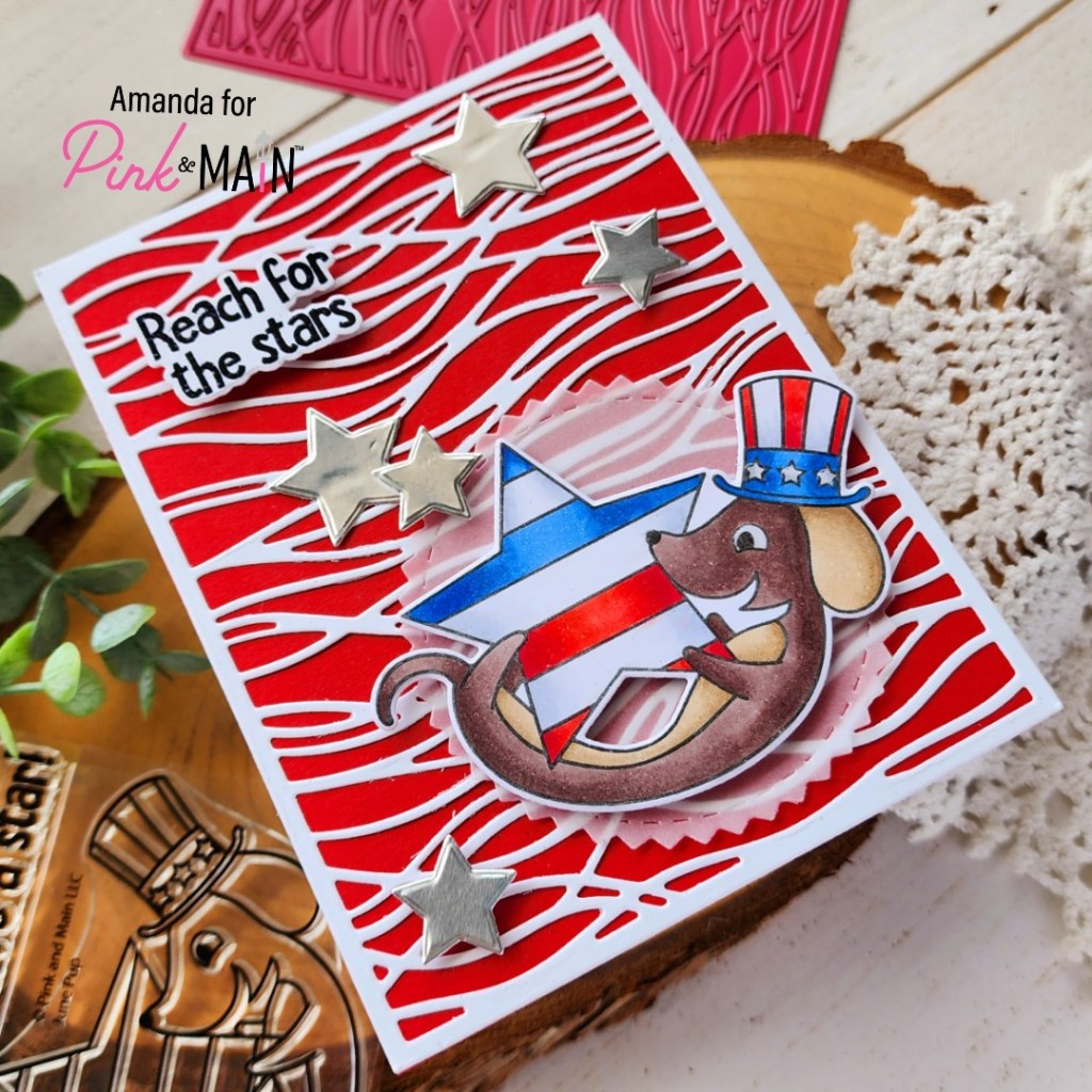 Hi everyone! I’m on the Pink & Main blog today with a little inspiration using a new background die and the June Pup freebie stamps and dies! I’m having a blast with this collection and so happy to have a patriotic version to add to the mix.