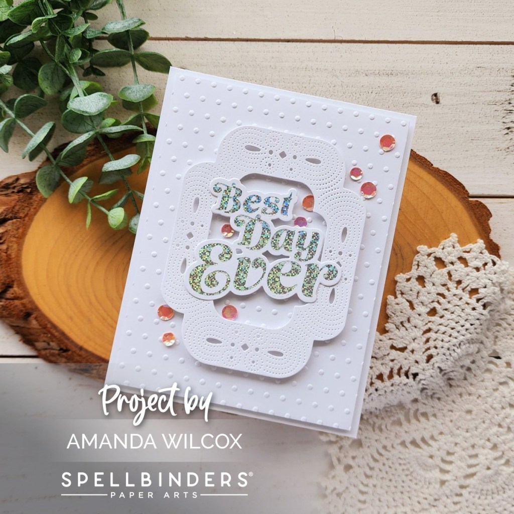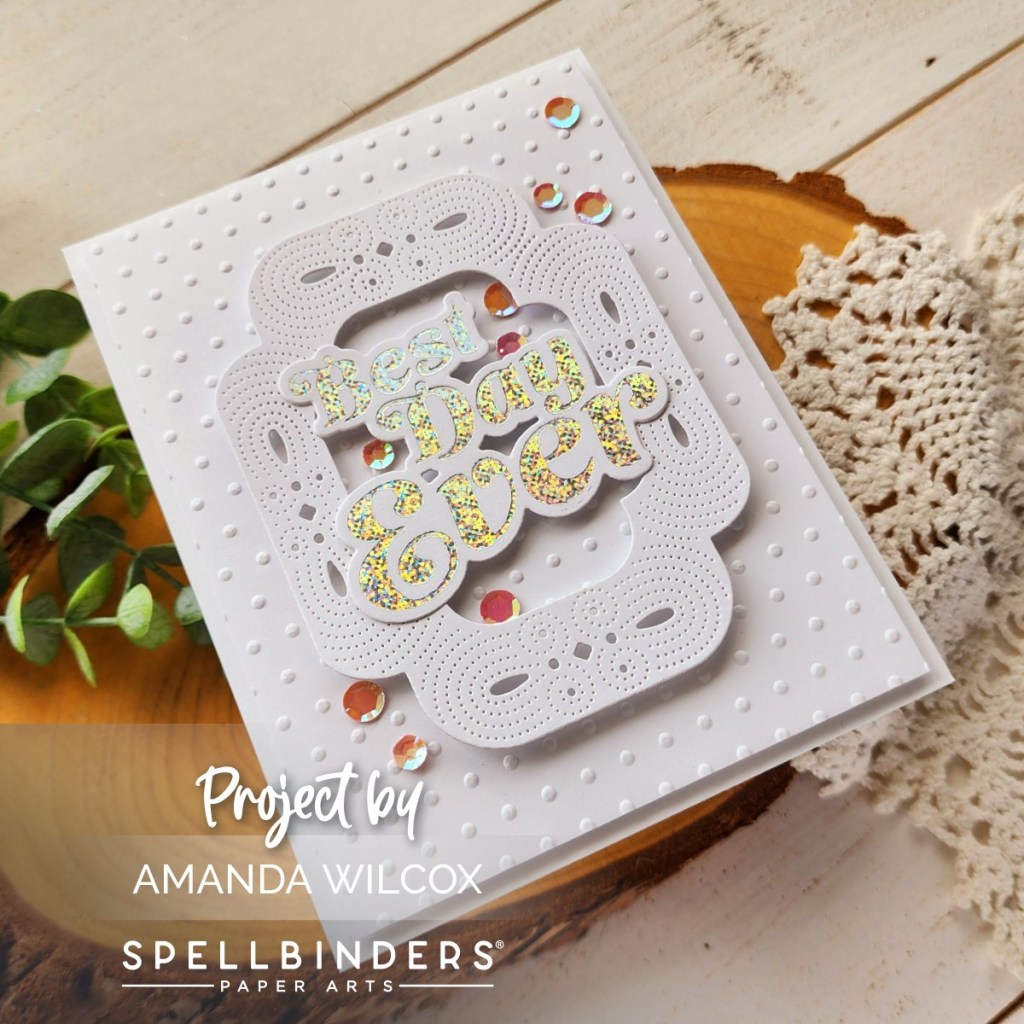 I’m going to start with this Best Day Ever card because I’m a little obsessed with it and how totally cool the holographic foil is on the sentiment! I paired the sentiment with the new Tiny Dots embossing folder and the middle section you get using the Scrolled Punch & Pierce Plate.