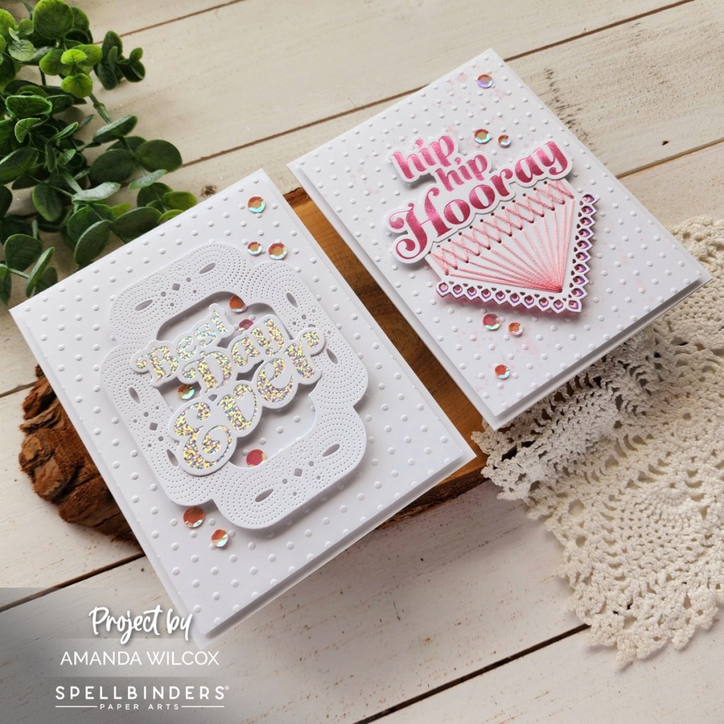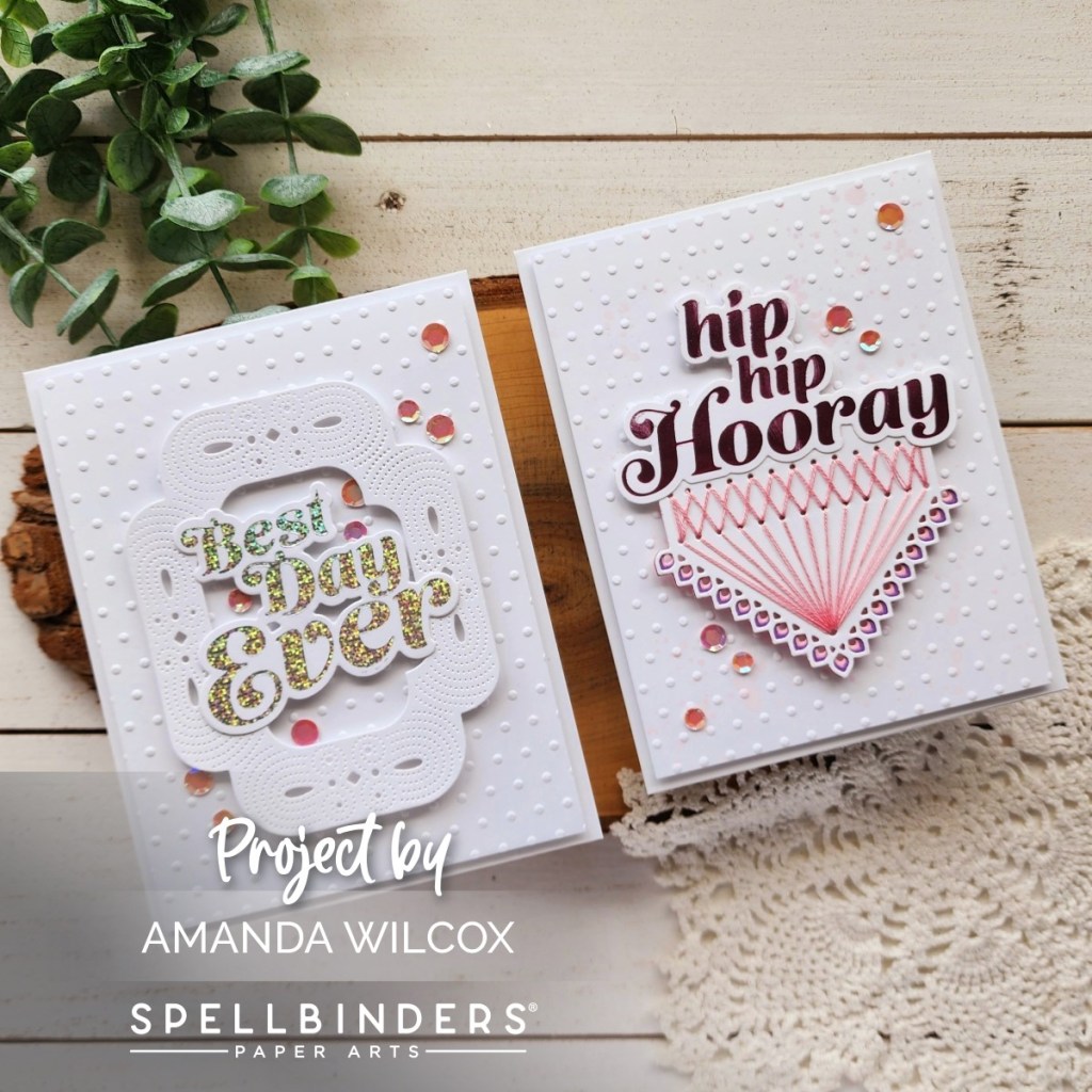 Happy Friday everyone!!! I’m popping in today with a pair of cards featuring the Spellbinders It’s My Party Too collection. It’s a fabulous add on to Carissa Wiley’s It’s My Party so be prepared you’re going to want it all! Super versatile, brilliantly designed and amazing to create with!