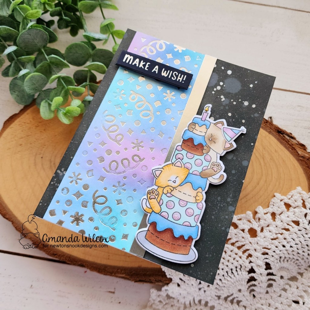 I inked my hot foil panel before coloring these sweet kitties so it was easy to choose a color palette that coordinated making my cake frosting extra fun! For finishing touches I added stardust Stickles to polka dots and Touch of Gloss to kitty noses and toe beans.