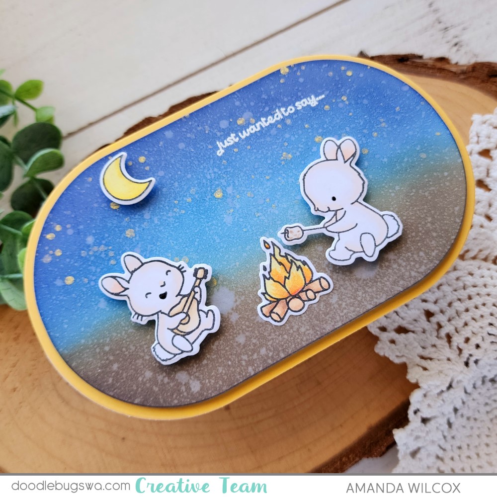 Hello there! I’m happy to be on the Doodlebugs blog today sharing a sweet camping scene card on a fun shaped card. Plus, I’m horrible at this usually, but I extended my sentiment and, sort of, my scene to the inside too. I think it turned out really fun and am excited to hear what you think.