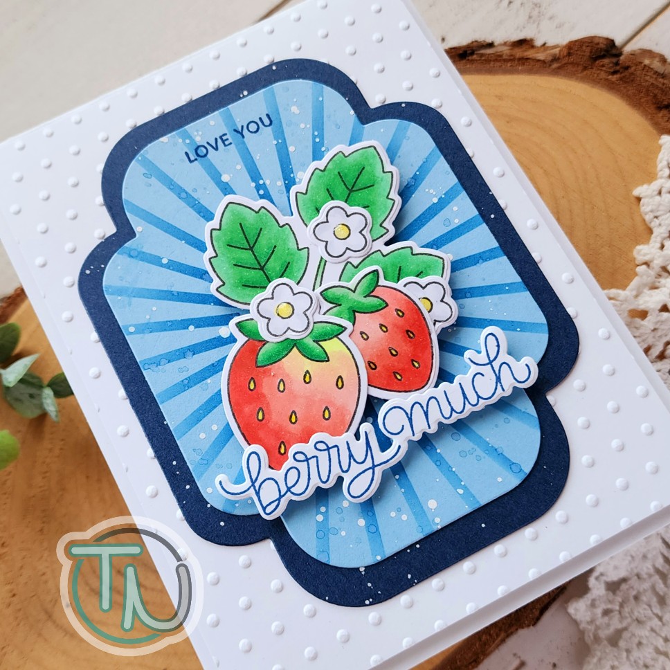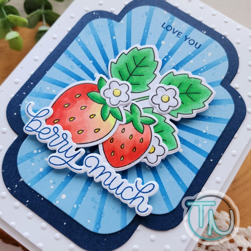 Using the images as a guide I stamped the first half of my sentiment in Blue Jay ink and then popped the berries and second part of the sentiment up with foam squares. I came in with a little Touch of Gloss on the flower centers and left it at that.