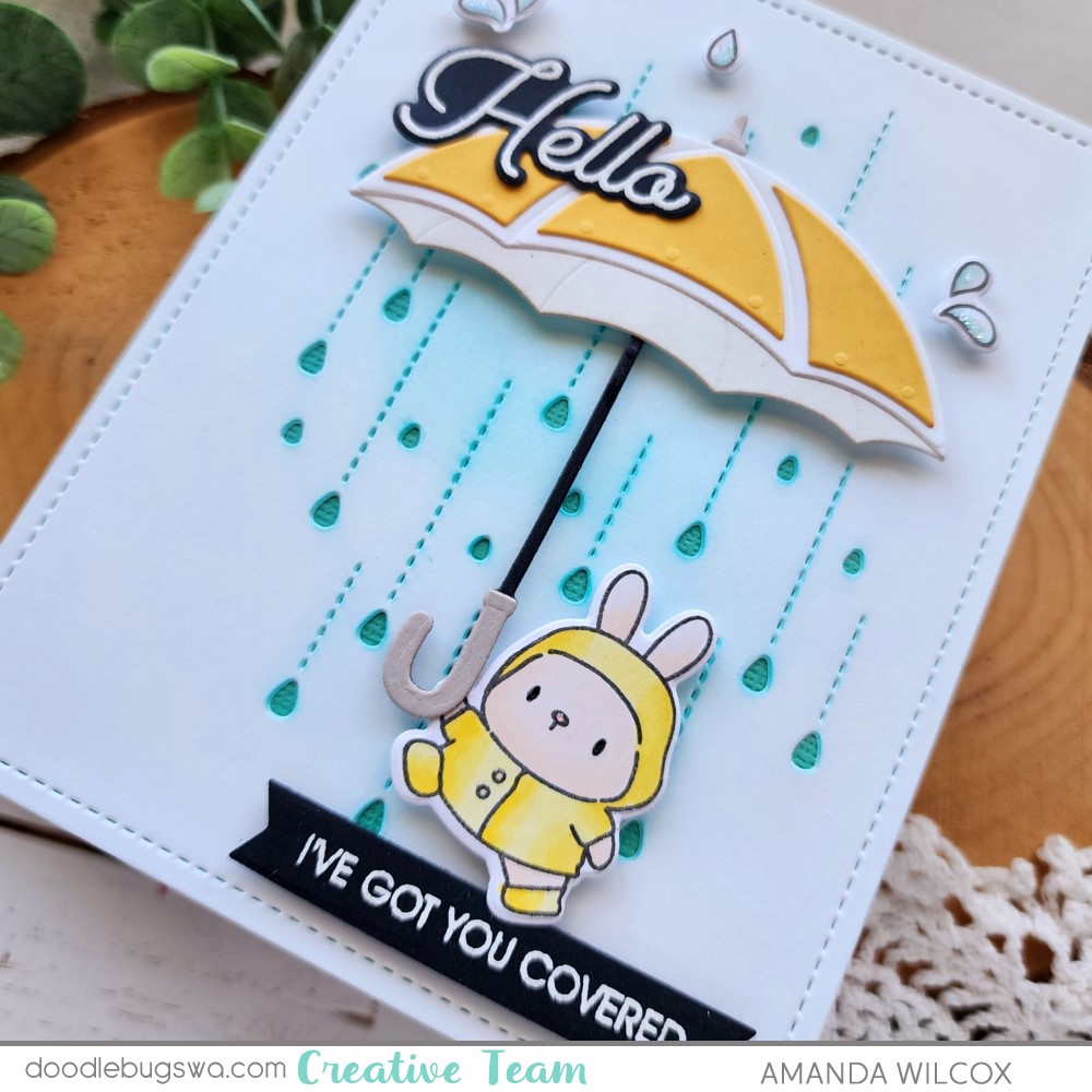 Hi there! So happy you stopped by today. I’m on the Doodlebugs blog sharing this super fun encouragement card featuring a combo of Mama Elephant and Spellbinders stamps and dies. I know it’s summer and we’re all roasting to death with the heat everywhere but I couldn’t resist a little rainy day fun.
