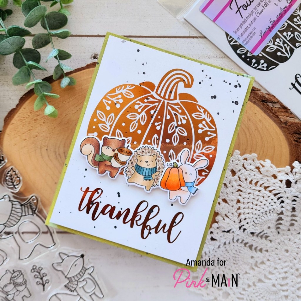 Hi everyone! I’m over on the Pink & Main blog today with a fun fall card using the one of the new Foilables card fronts and some sweet critters from a new stamp set too. They work so fabulously together. I love it!