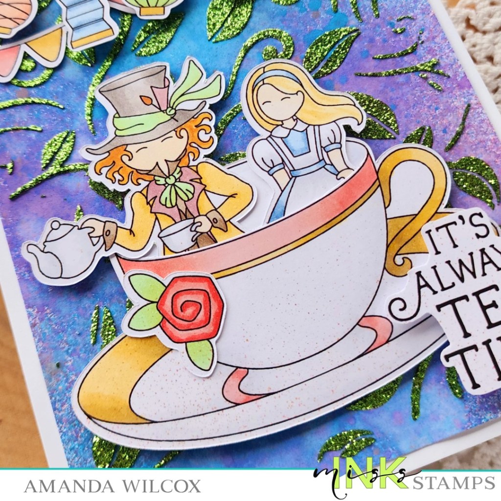Hello everyone! I’m back with another sneak peek of the upcoming Miss Ink Stamps September Release! It’s a fantastic addition to the Alice collection that already exists. Today I have a card featuring the other images in the Tea Cups set that I just adore!