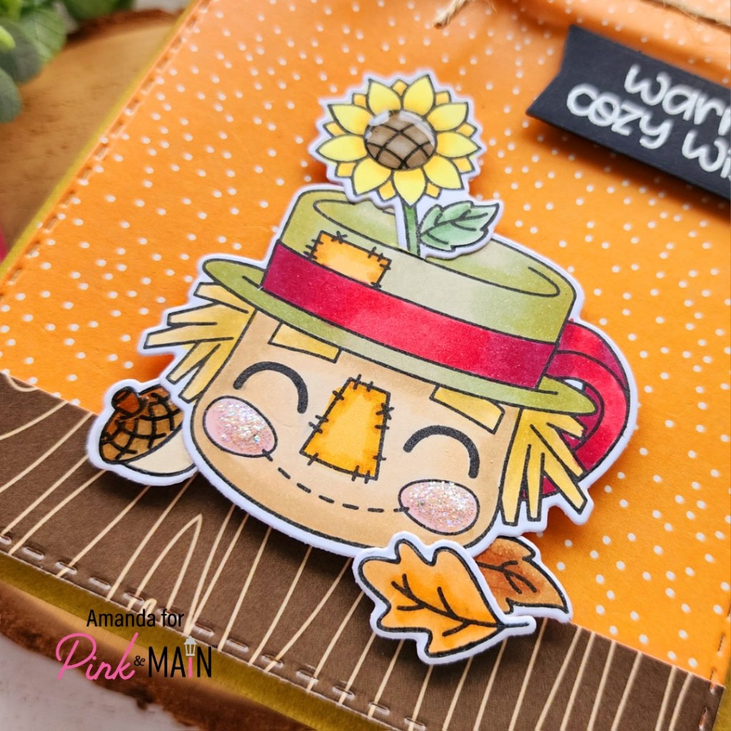 Hello everyone! I’m back with more caffeinated inspiration from Pink & Main! This mug stamp set is one of my forever favorites and I couldn’t pass the chance to ink it up and play. Today I chose the scarecrow mug and a few small images to go with him.