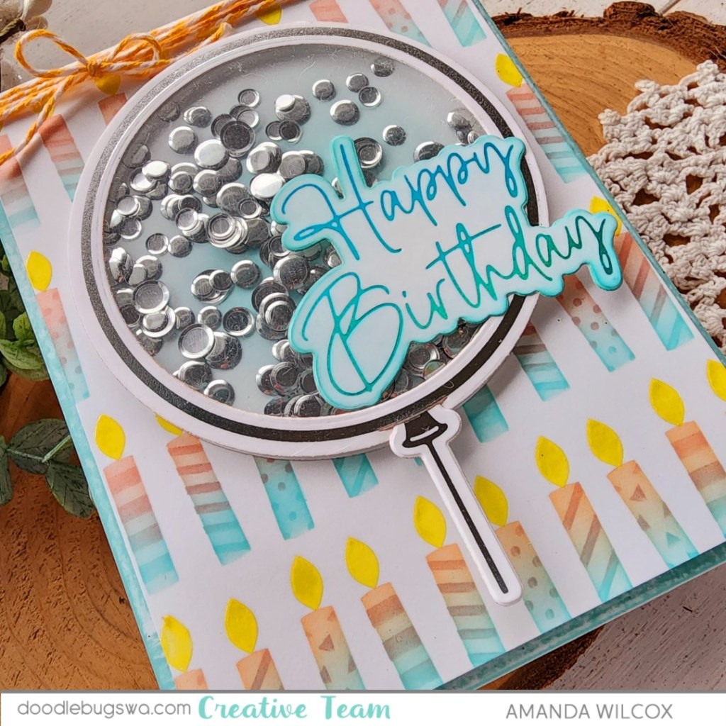 Hey friends! Let’s mix things up with a fun birthday shaker card on the Doodlebugs blog today! I pulled out some fabulous hot foil plates from Spellbinders and combined them with Pretty Pink Posh stencils for my background and the combo couldn’t be more perfect!