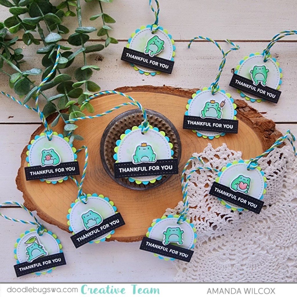 Hello everyone! For this week’s Mix-it-up Monday I’m sharing a gift tag project I created for work. We just had our annual Conference last week and I made gift bags for some of the Board as an end of year thank you to them. You know I can’t have gift bags without cute tags to go with them. So I spent a little bit and assembly lined a batch of froggy cuteness.