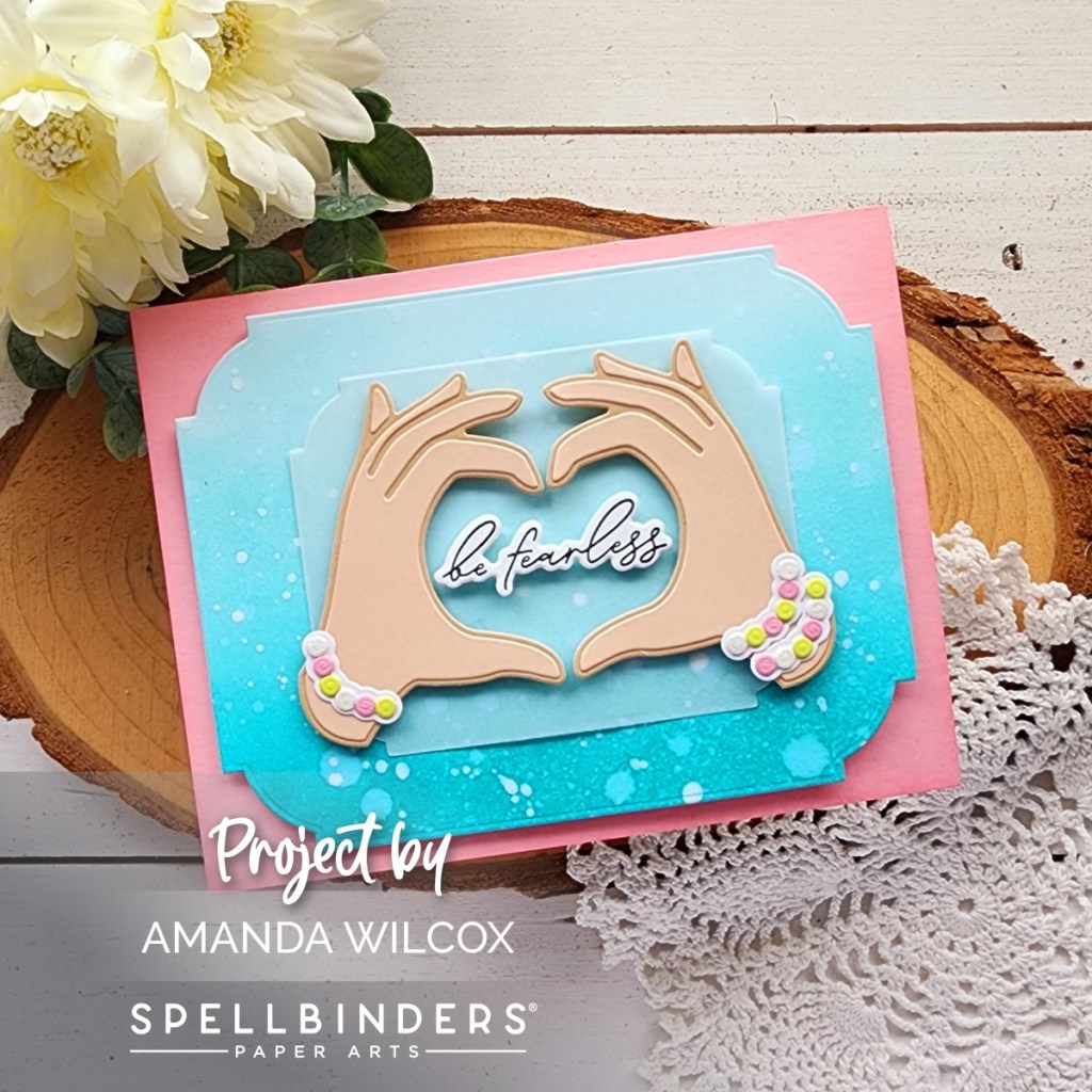 I couldn’t resist making a few closed bracelets as well and just love the Bestie Heart in Hand dies to go with them. I pulled this together with more distress oxide ink blending in the background and a frame created with the Make a Wish Arch Labels dies.