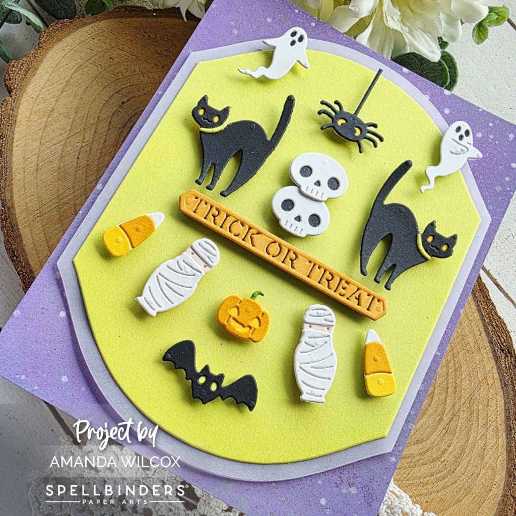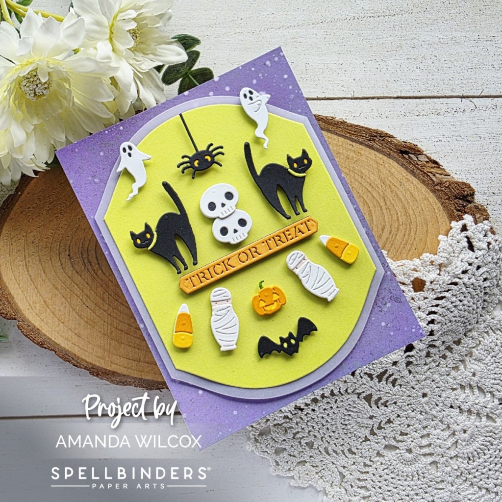 Today I’m popping in with two cards featuring just the Halloween add on die set that is part of the Cuckoo Cottage Collection that released a few days ago with Spellbinders.