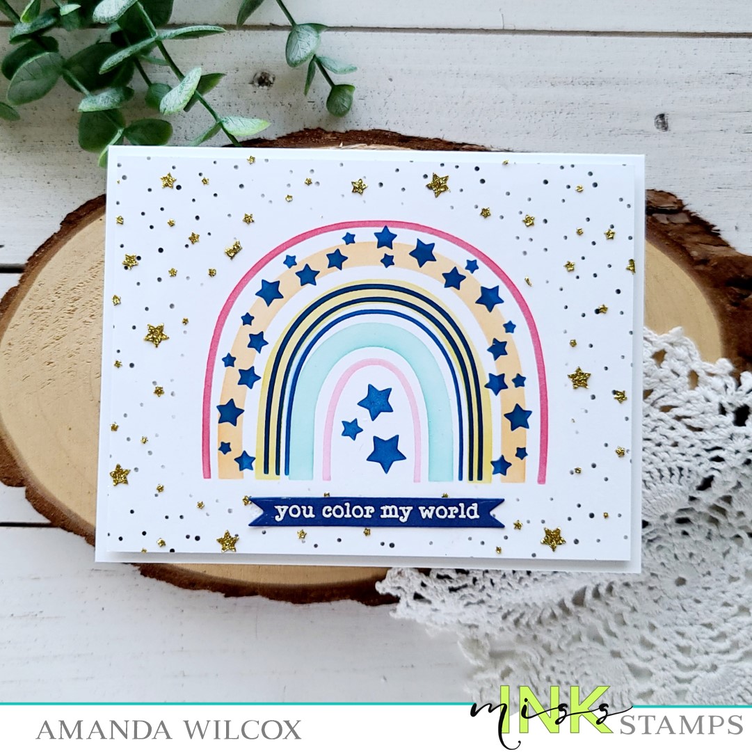 Hey friends! I’m back today with another Miss Ink Stamps card. I just had to bring that awesome Rainbow Builder stencil set and play again. I just love these so much!