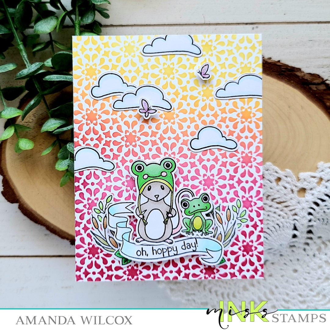 After that, I left the oval in place, removed the first layer of heartburst and lined up the second layer to add a blue ink to the mix and finish off my stenciling.
