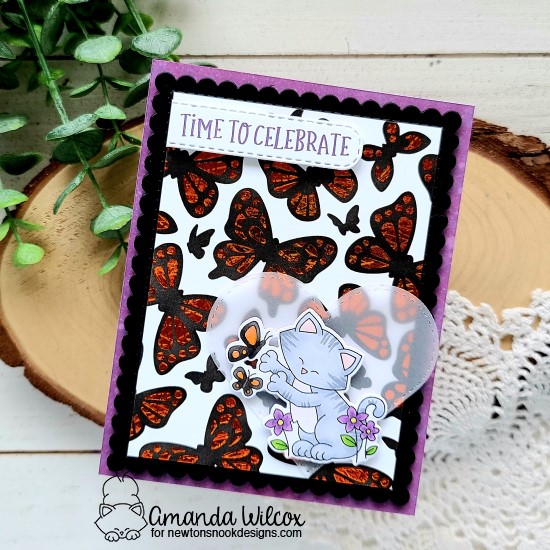 Next, I stamped and colored the images from Gnome Bunny and cut them out. I chose my sentiment, stamped and heat embossed it in white on a strip of black cardstock and started assembling my card.