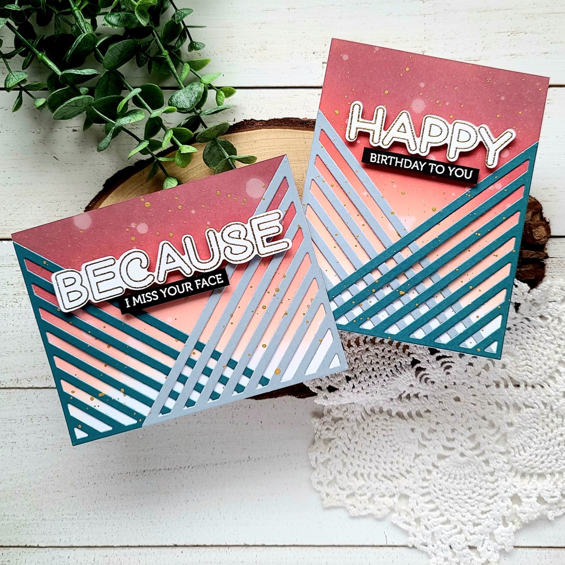 I loved one of the sentiments in the spring pile up set and saw that part of it was in the spring roundabout set so I did some partial stamping and created it in a new way. I die cut one of the banner trio dies and stamped the first part, then die cut a pink banner from the slimline frames & windows set and stamped the rest of it. I glued them together so it was easy for placement later. I die cut the scalloped rectangle from frames & flags and used the basketweave stencil on the background.