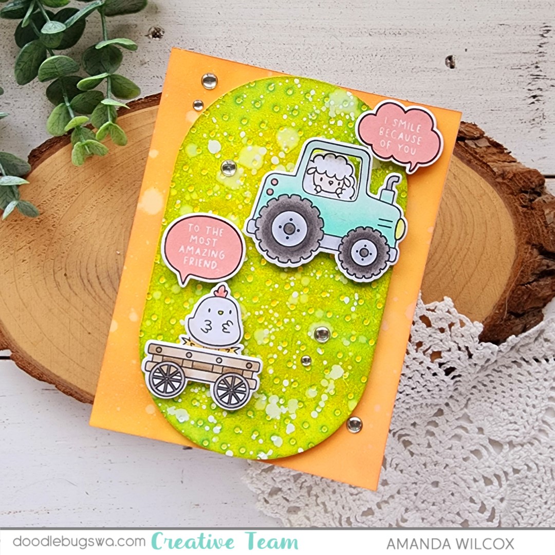 I went direct-to-paper with my ink pad again on the card base. I love that texture and variation that you get from such a quick technique. For finishing touches I added glossy accents to the boba and Newton’s nose and toe beans.