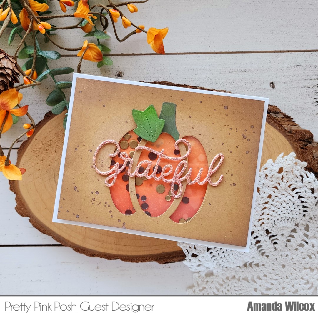 Today I have a fun shaker card to share with you featuring the new Pumpkin Shaker dies and last year’s Grateful Script die for a beautiful sentiment.