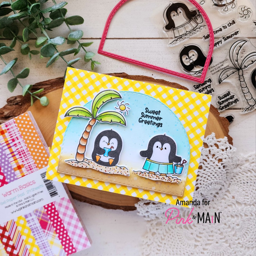 To turn this into a shaker card, I just added acetate to the back of the panel and lined it with foam tape. I sprinkled shaker bits inside and sealed it up with a piece of white cardstock. Then I glued the panel to a card base and it’s all finished.