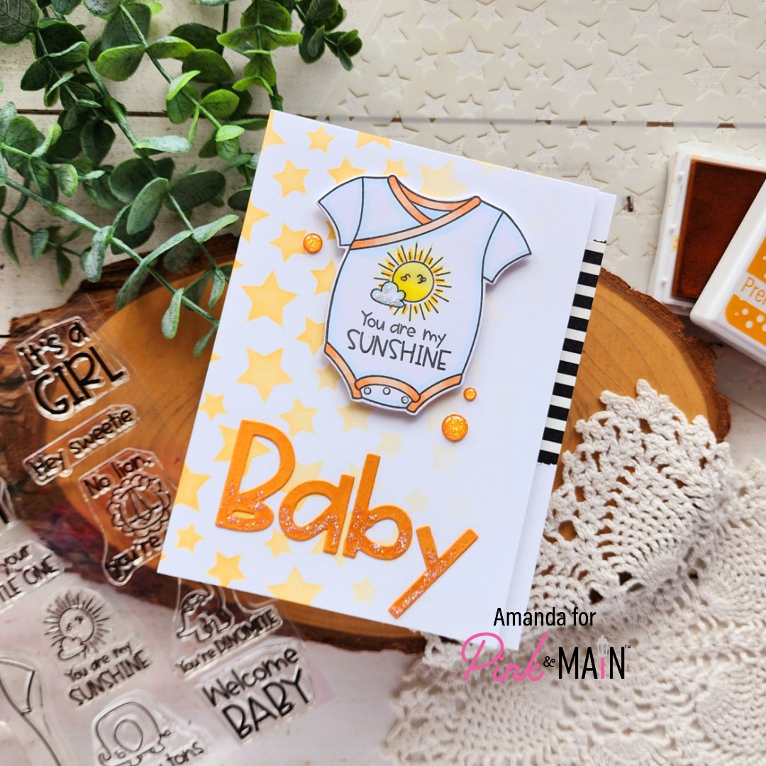 I stamped a few music notes before using the coordinating dies to cut everything out. Then I used the Raindrops stencil on a piece of white cardstock with teal ink fading as I went down. I removed the stencil and inked the top of the paper with the same color.