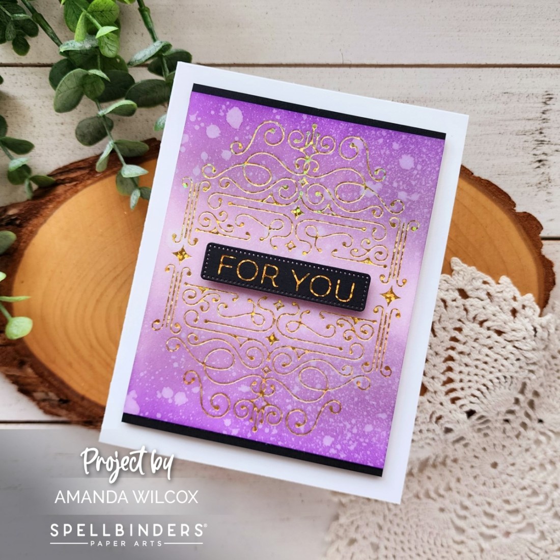 Hello again! I’m stopping by with a quick and eye catching card to share with you featuring Spellbinders Four Petal Scroll hot foil plates. This one simple set makes it incredibly easy to create eye catching cards quick and easy.