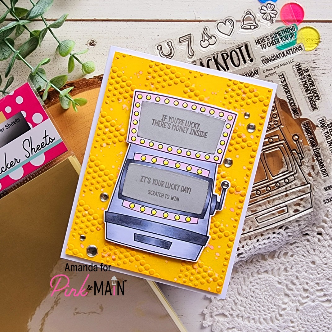 I die cut the panel with the largest Framework die and placed it in my MISTI. Using the images as guides, I stamped my sentiment on the kraft panel. Then I added foam tape and popped it up on a white card base and did the same with my images.
