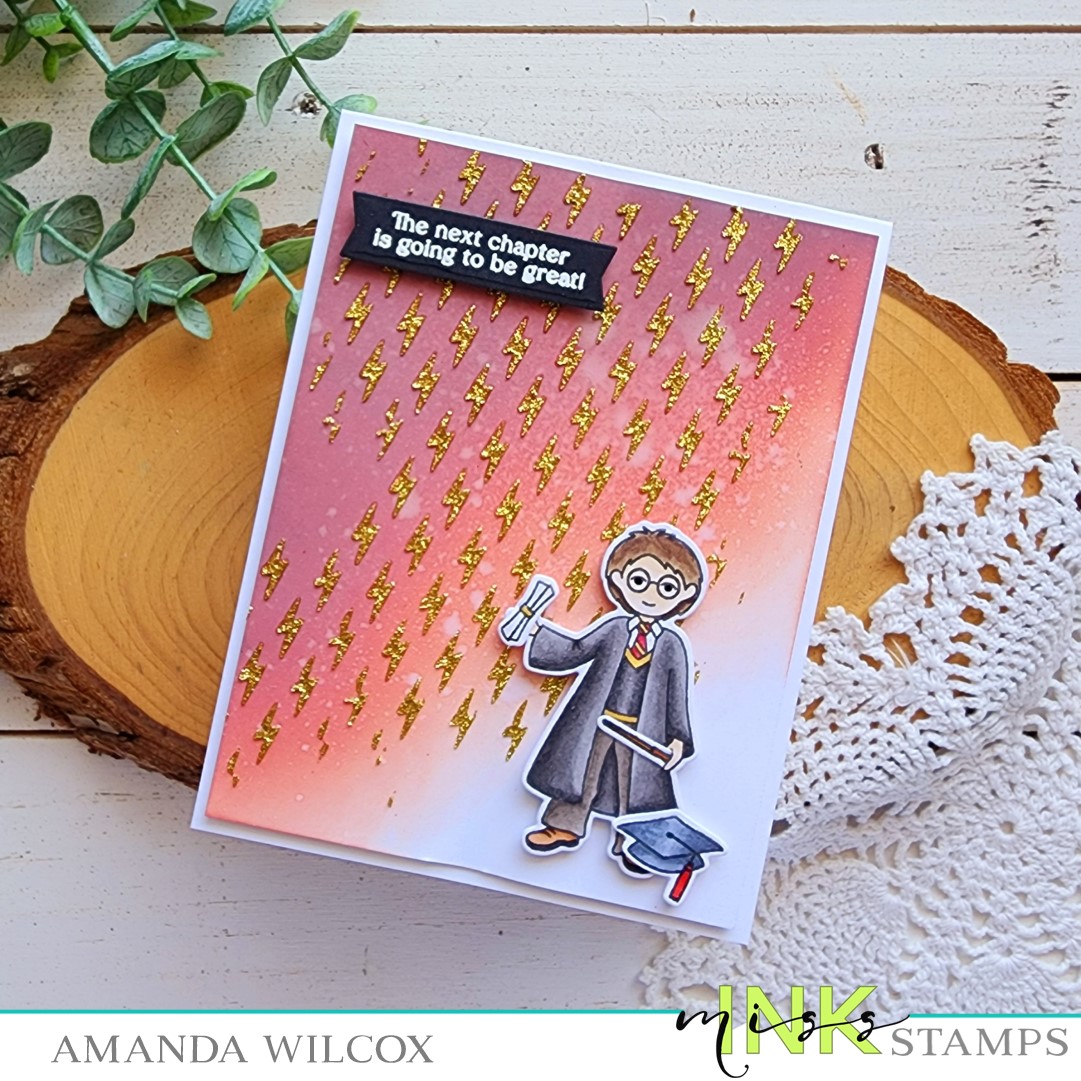 Happy Thursday everyone! I’m back with another bit of inspiration featuring the new Miss Ink Stamps Magical Release. It’s so amazing and so fun to play with! Today I have a graduation card to share that will be perfect for my stash until next summer.