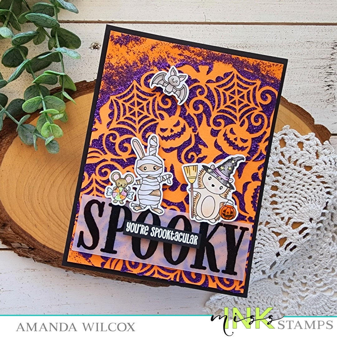 Hi there! I’m back today with some spooky fun inspiration using some more amazing Halloween goodies from Miss Ink Stamps. I didn’t get a chance to use this awesome Halloween Mandala stencil last year and forgot about it until this week, so I immediately pulled it out to play.