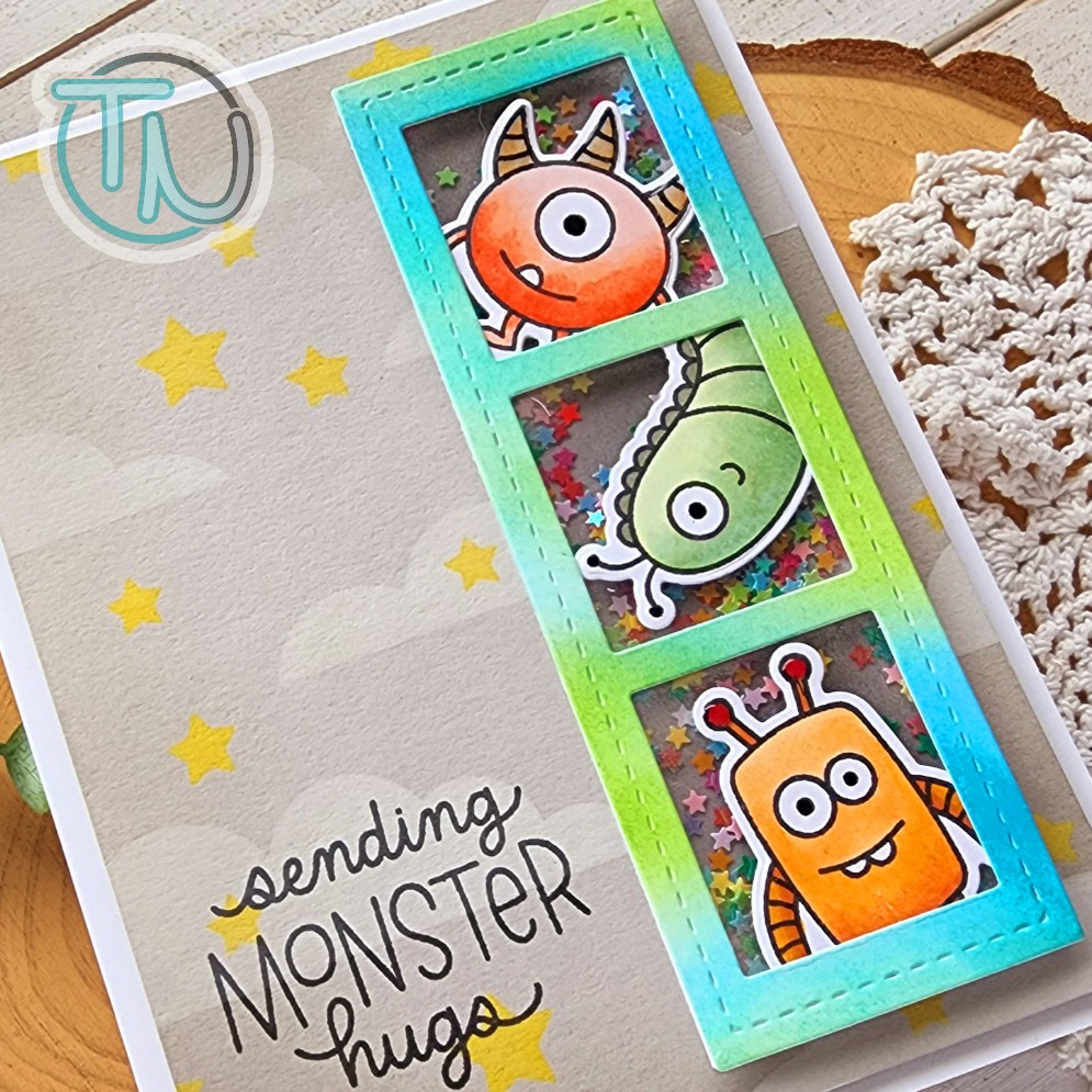 Then, I lined up the detail layer which adds the mug handles and decorations to each mug too. At this point you have tons of choices. Keep it simple and ink another color, add transfer gel which leads you to either flocking or foiling, or add glitz glitter gel for some pizazz. So many different looks!