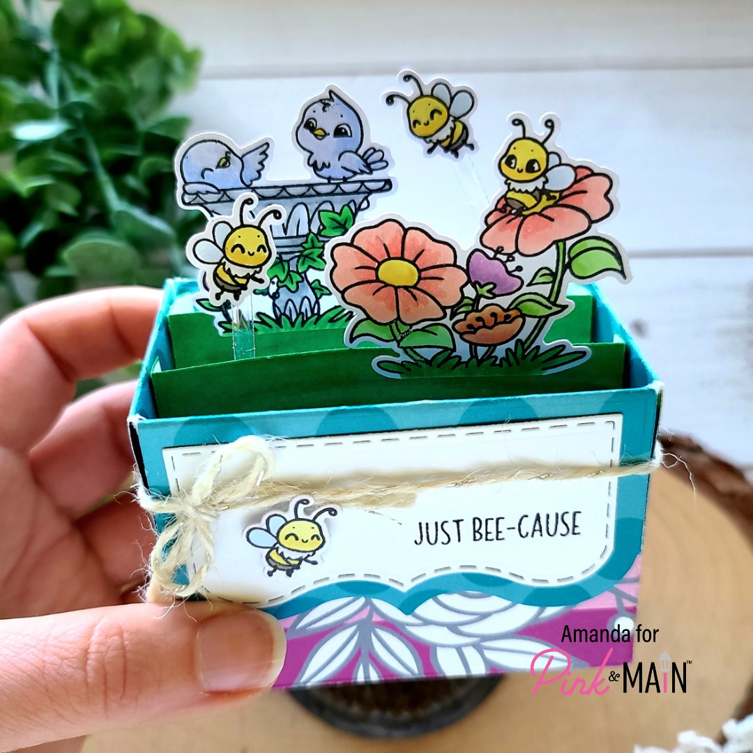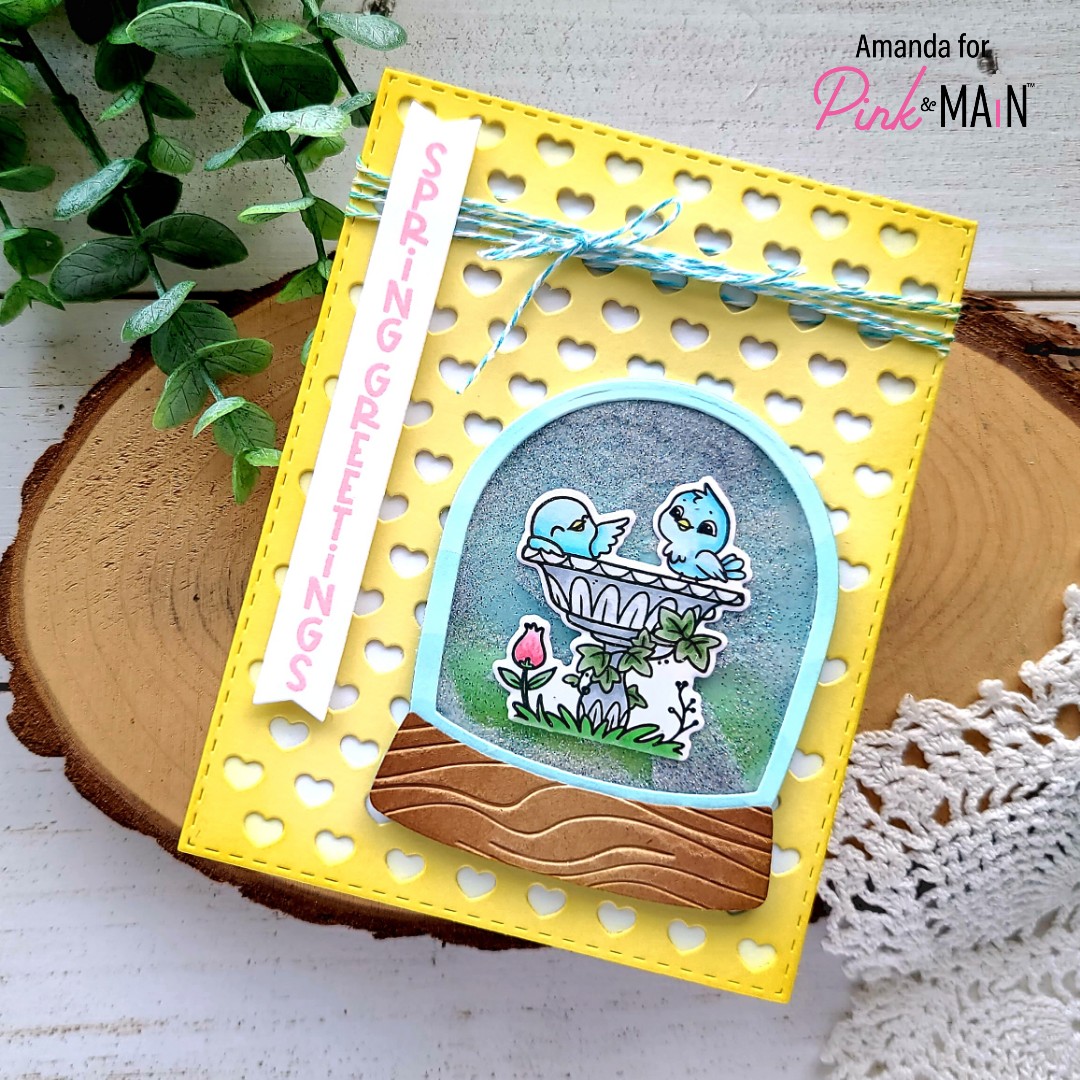 Happy Friday my crafty friends! You know what Friday means…another fantastic inspiration day for Pink & Main! Today I’m over on their blog sharing this adorable box card using the mini scenes from the recently release Spring Snow Globe Scenes stamp and die set. I love these images and thought they would layer together great for a fun spring scene in a box card.