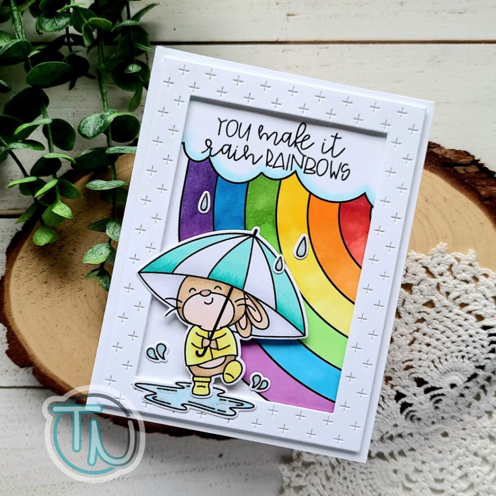 Hey everyone! I have a new happy card to share with you today. This idea popped in my head the moment I saw the reveal for Avery Elle’s new Look For Rainbows stamp set. It’s just too cute and had to be paired with the Rainbows stamps immediately!