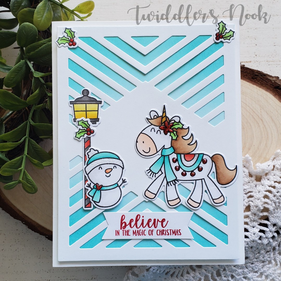 Today’s card features Avery Elle’s Cocoa Stand, some fun ink blending and lots of sparkle!