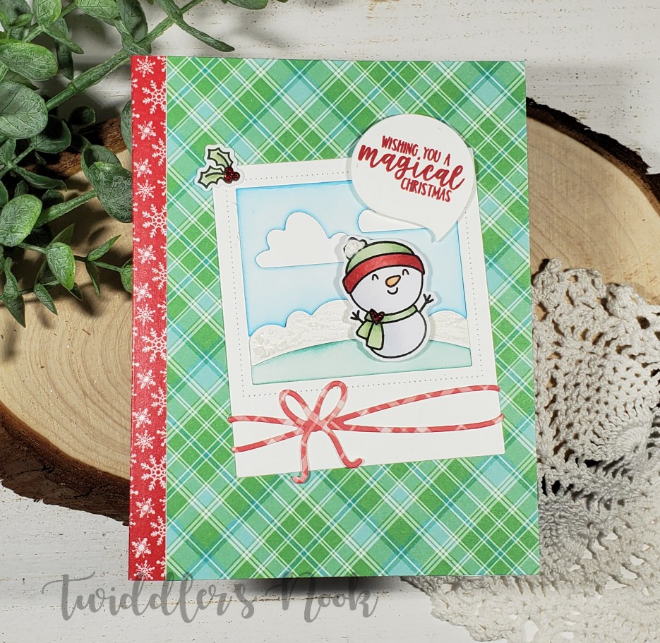 - Last, I stamped and heat embossed the sentiment from Avery Elle’s Christmas Kids in silver embossing powder.
