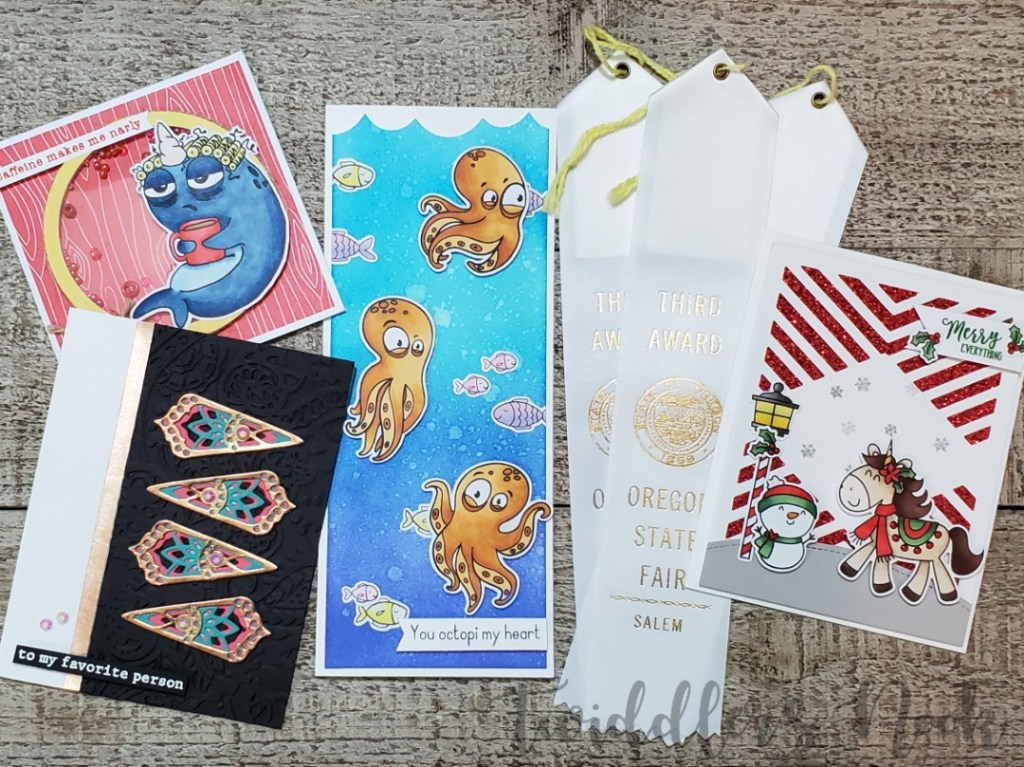 - Heat emboss stand sentiment on the top with white embossing powder.