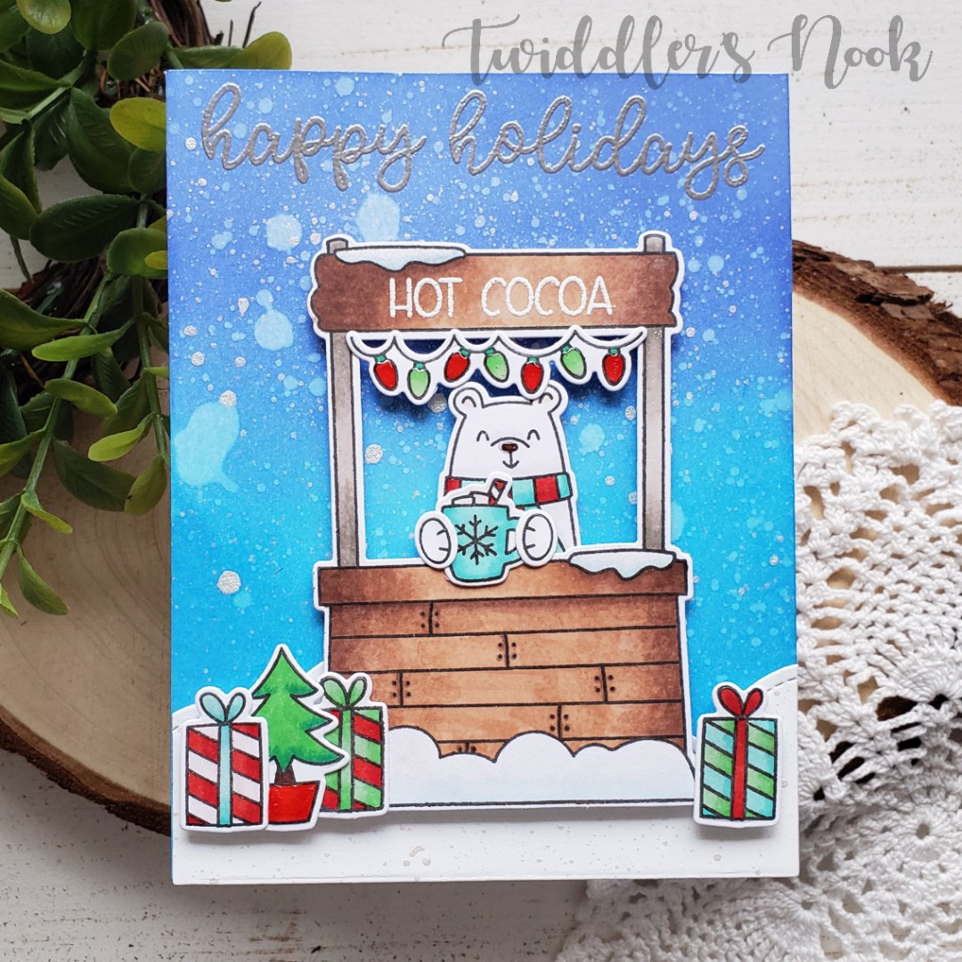 - Stamp, color and die cut images from Avery Elle’s Cocoa Stand.