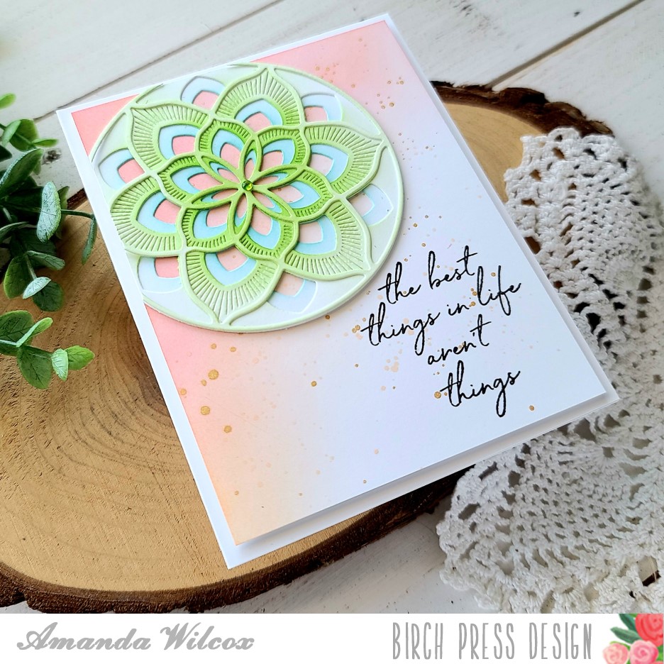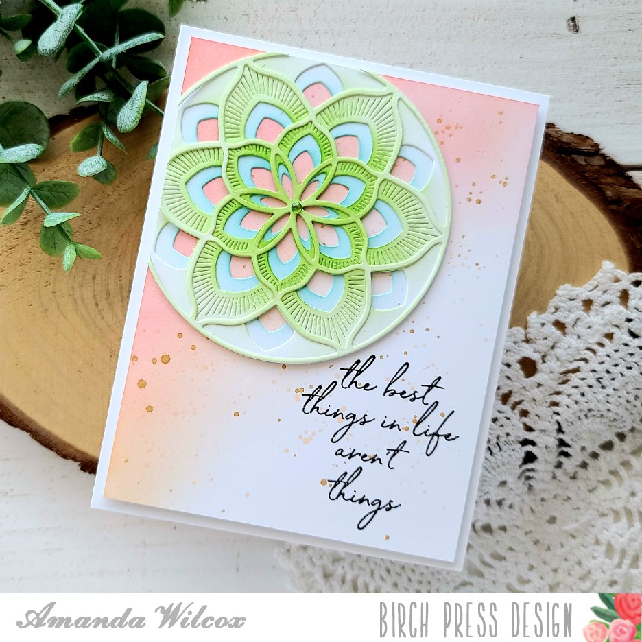 For my layers, I did some ink smooshing on watercolor paper for the green layer. Then a fabulous foiled plaid paper for the middle. And finally, I ended with ink blending over the die cut panel on kraft cardstock for the top.