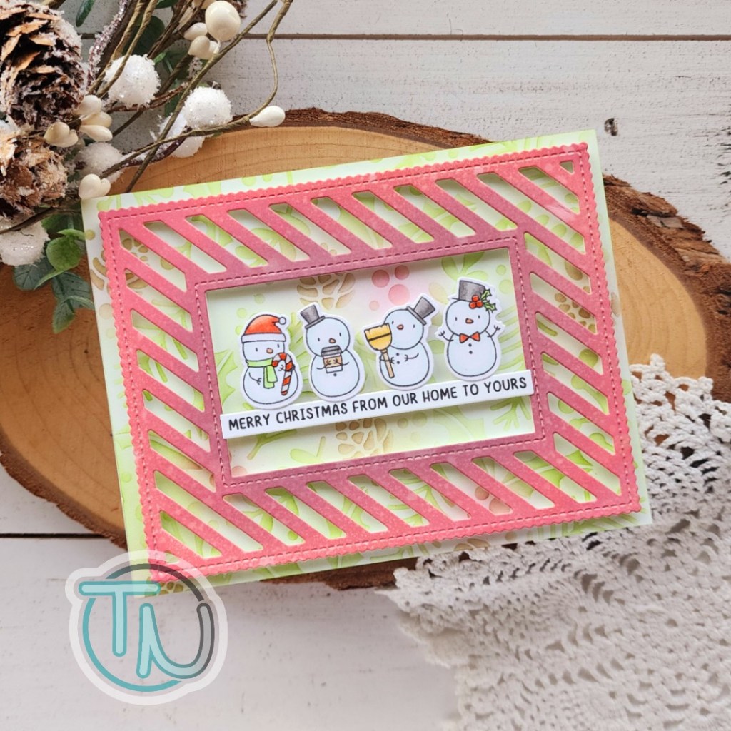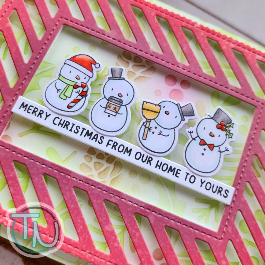 I colored some Mama Elephant Little Agenda Snowmen and die cut them. Then snagged an extra sentiment I saved from the Mama Elephant Easy Xmas Greetings. These sets are fun because they stamp and die cut three sentiments at a time.