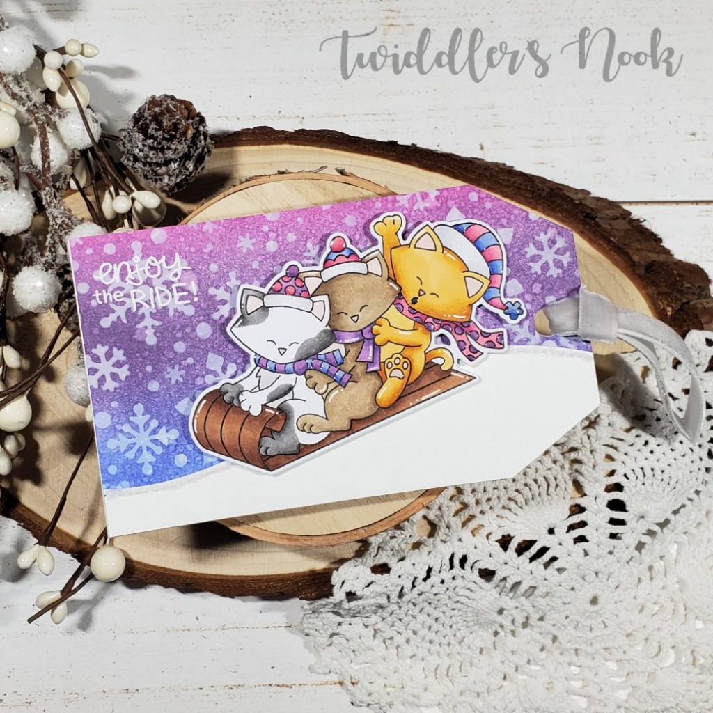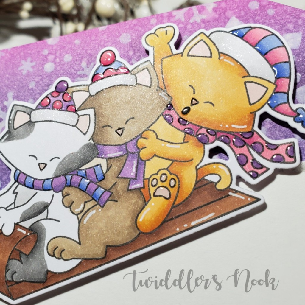 I simply used my Cricut to cut out all the pieces in different colors and assembled them with a combination of liquid glue and tape runner. I stamped the sentiment on the tea bad from the Newton’s Nook Cup of Cocoa stamp set. I thought it was just too perfect of a sentiment and it fit great too!