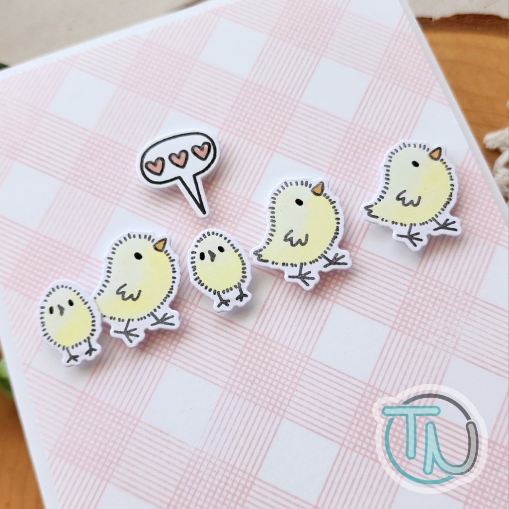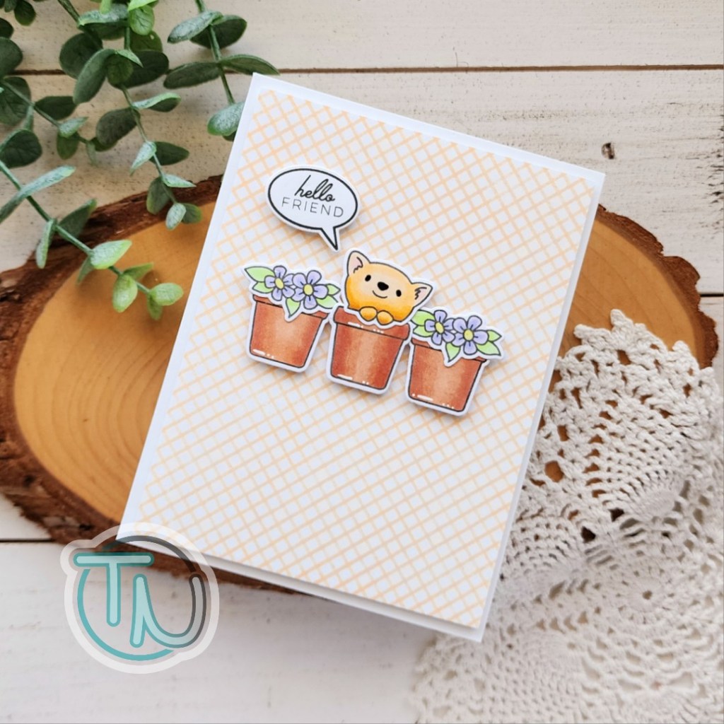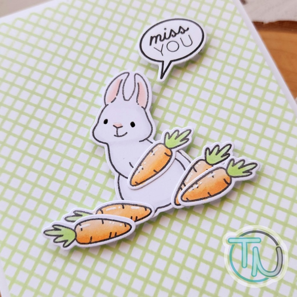 I used the same stamp and die set for my sentiment but pulled in all three colors this time. I also glued my hats down askew instead of straight. It’s more playful and I love that!