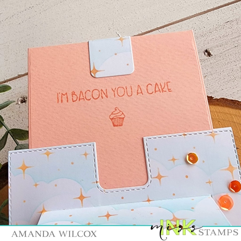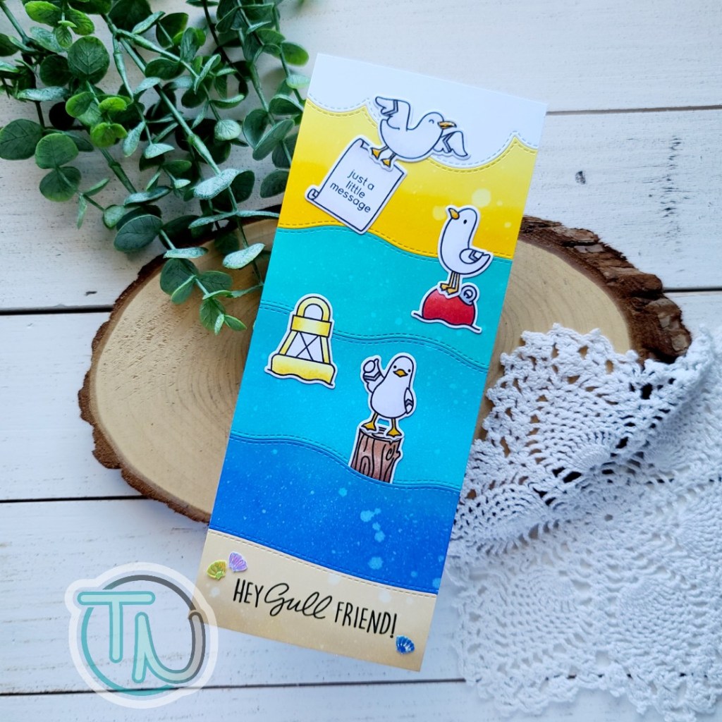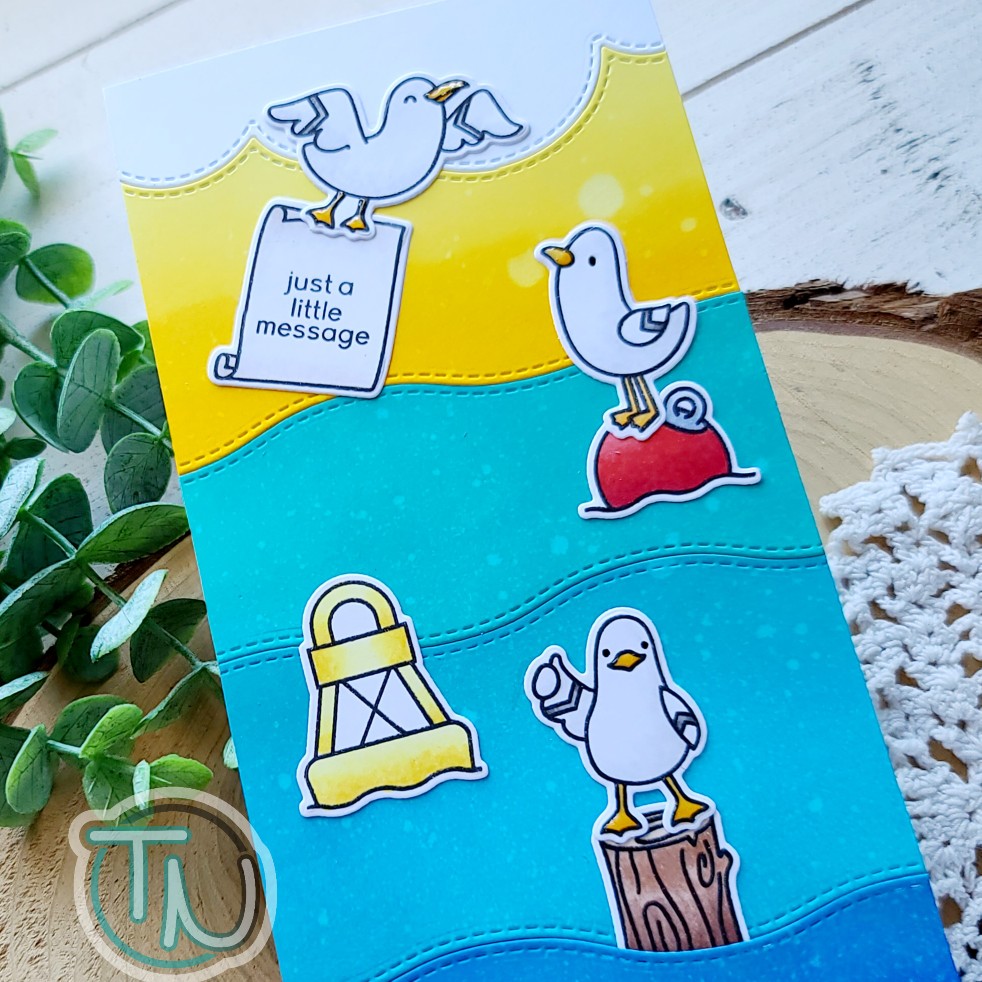 When I stamped my pebble sentiment, I chose a light yellow/orange ink and then went over it a second time with a slightly darker ink only on the bottom. I used my finger to blend out the seam before stamping it so it’s not a harsh line.