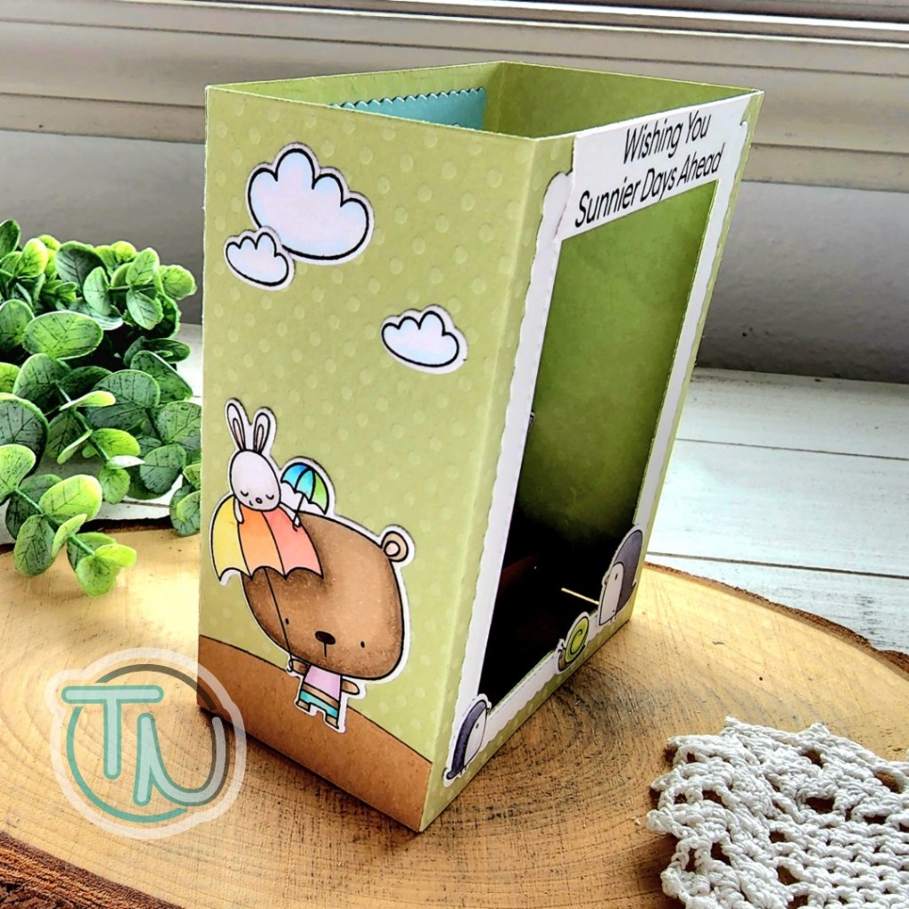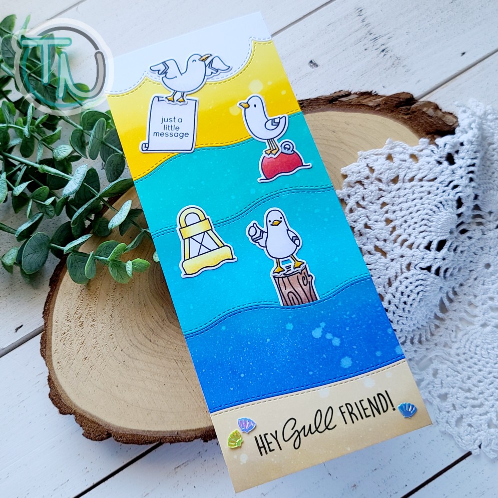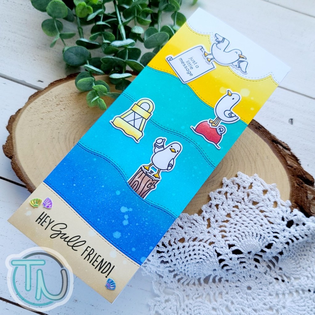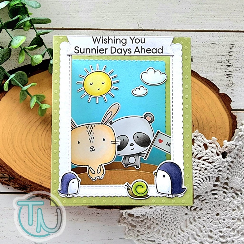 When I stamped my pebble sentiment, I chose a light yellow/orange ink and then went over it a second time with a slightly darker ink only on the bottom. I used my finger to blend out the seam before stamping it so it’s not a harsh line.
