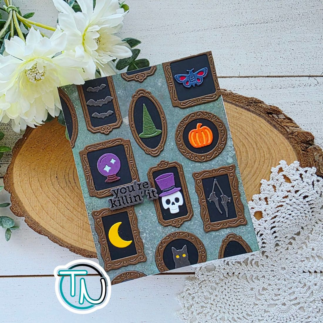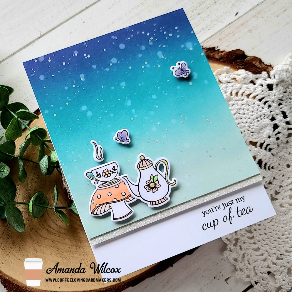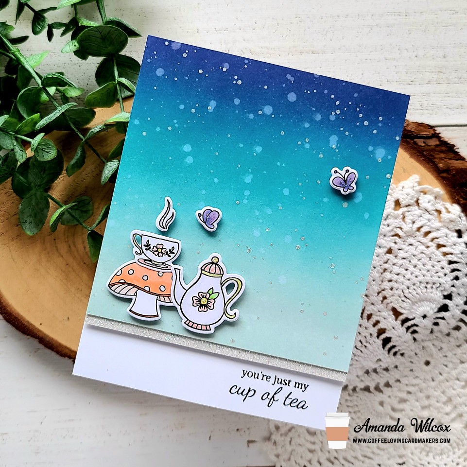 For my second card, I went darker on my color palette and finished things off with some Astro Paste for the beautiful gold glitter. This library belongs in a castle somewhere, I’m sure of it!