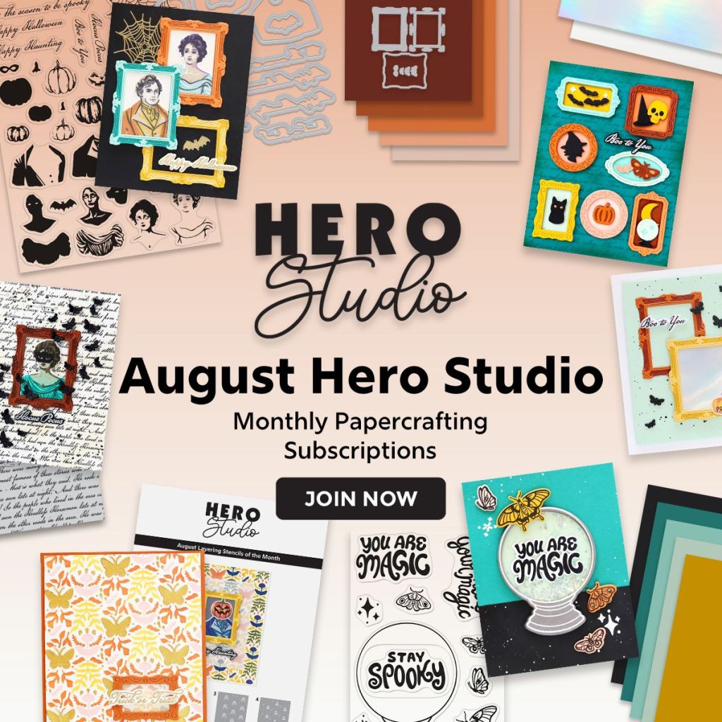 If you haven’t thought about the Hero Studio subscriptions from Hero Arts, I highly recommend. The themes are so fun each month and you know it’s so fun to have something new to create with regularly! It’s also a steal of a deal compared to retail prices.