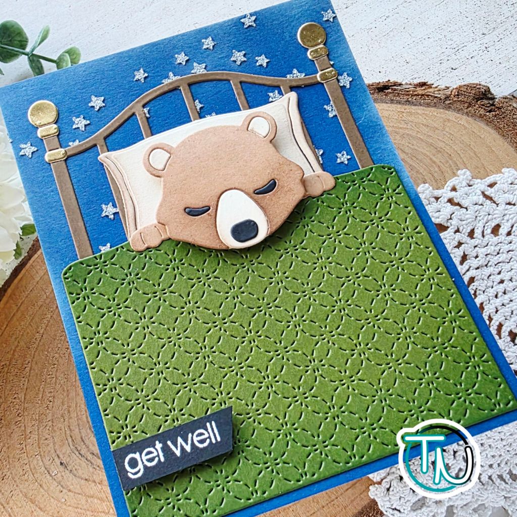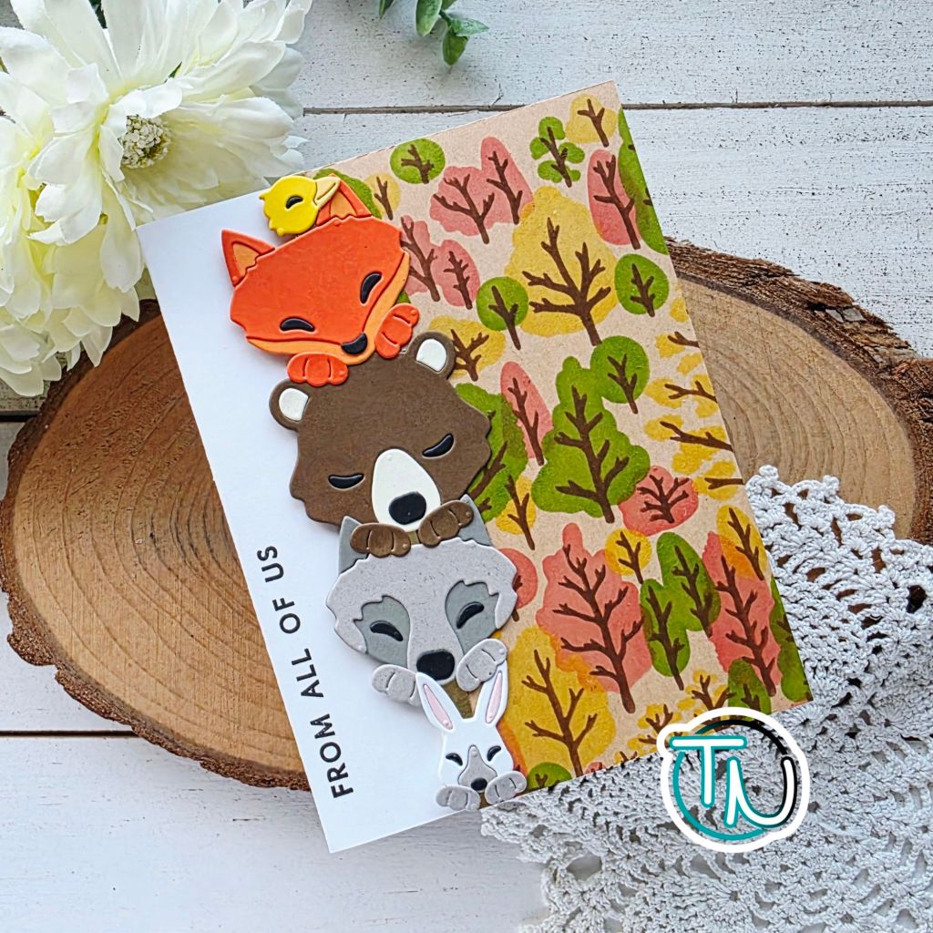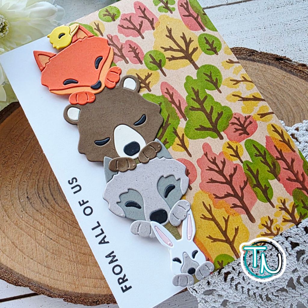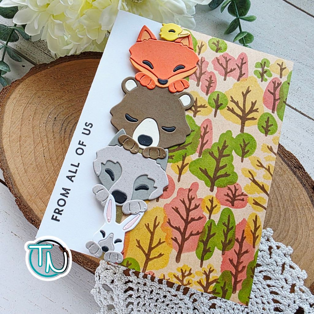 My first try at the layering stencil, I went with a ton of bright, happy colors just to play with it. It was so fun and I love how it turned out! Then I grabbed the die of the month set and couldn’t wait to build the sweet book worm, along with both styles of books included.