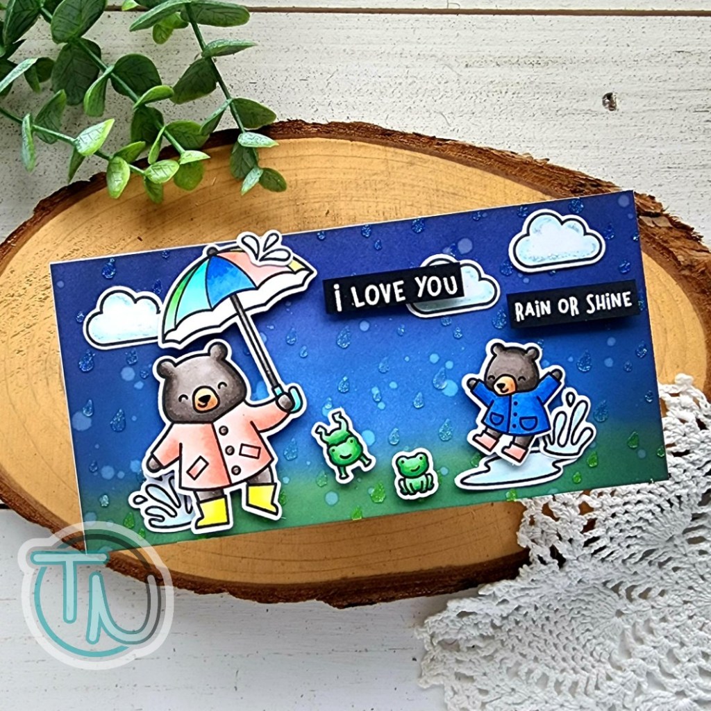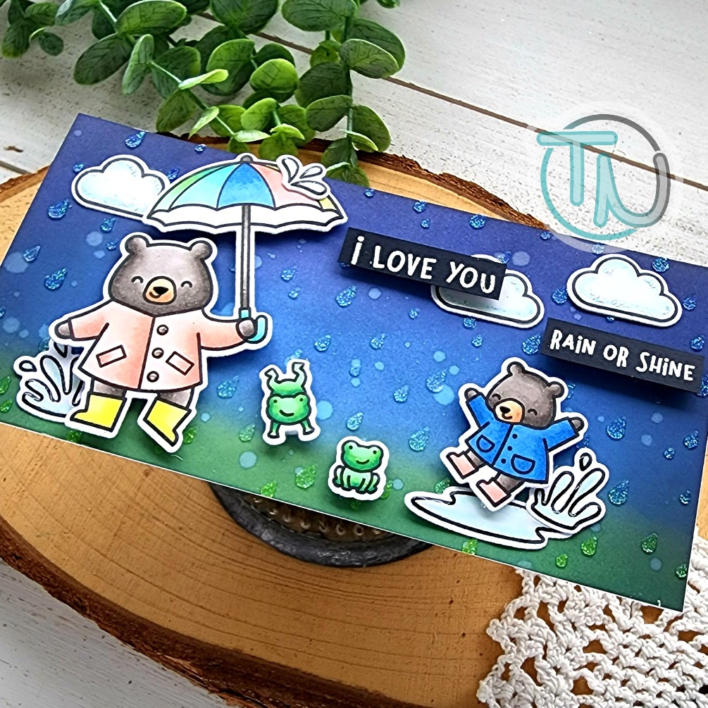 I chose images from Beary Rainy Day and colored them with my copic markers using the vision board as a reference to my color palette. I had a blast doing this and trying to match the colors with theirs.